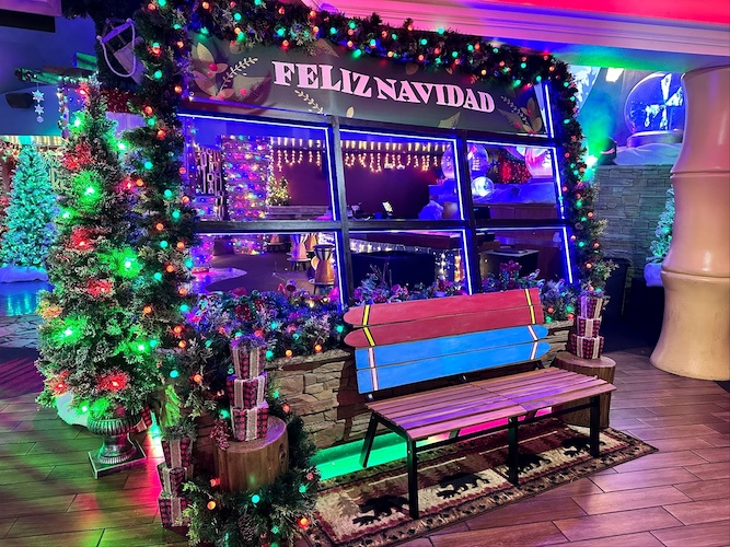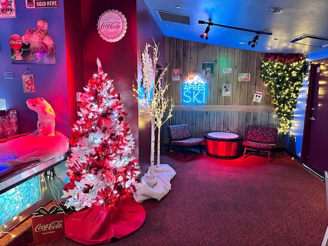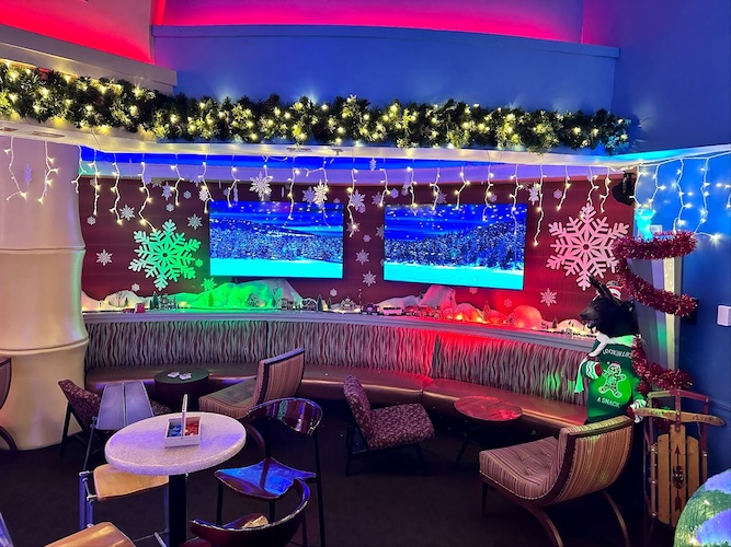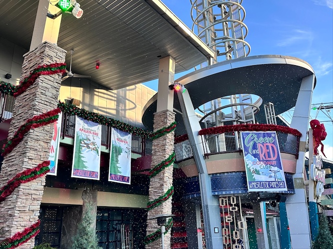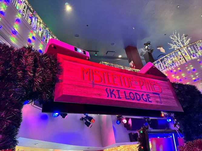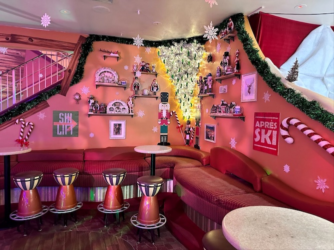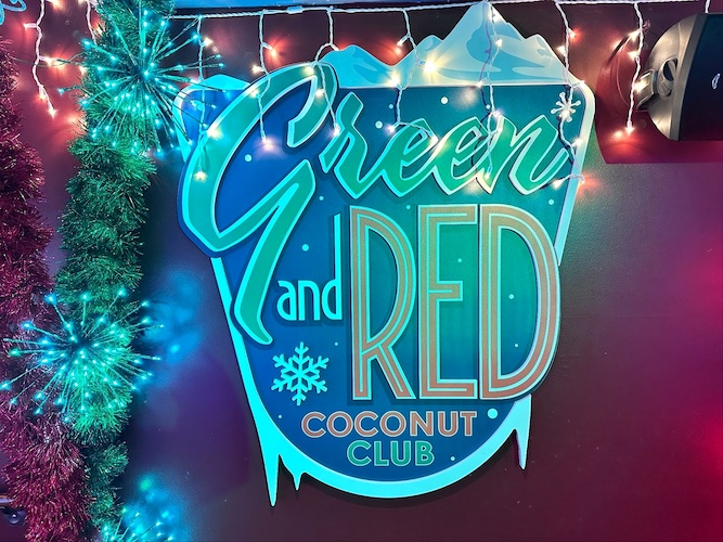 Officially opening on November 22nd, guests can step inside the Green and Red Coconut Club at Mistletoe Pines Ski Lodge to enjoy a festive celebration of holiday spirit.
