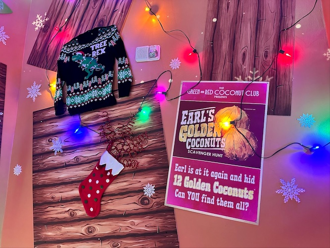 The humorous holiday experience features hilarious hidden details so make sure you explore while enjoying a Christmas cocktail at Mistletoe Pines. Earl has even hidden 12 golden coconuts throughout the Green and Red Coconut Club, so keep your eyes peeled!