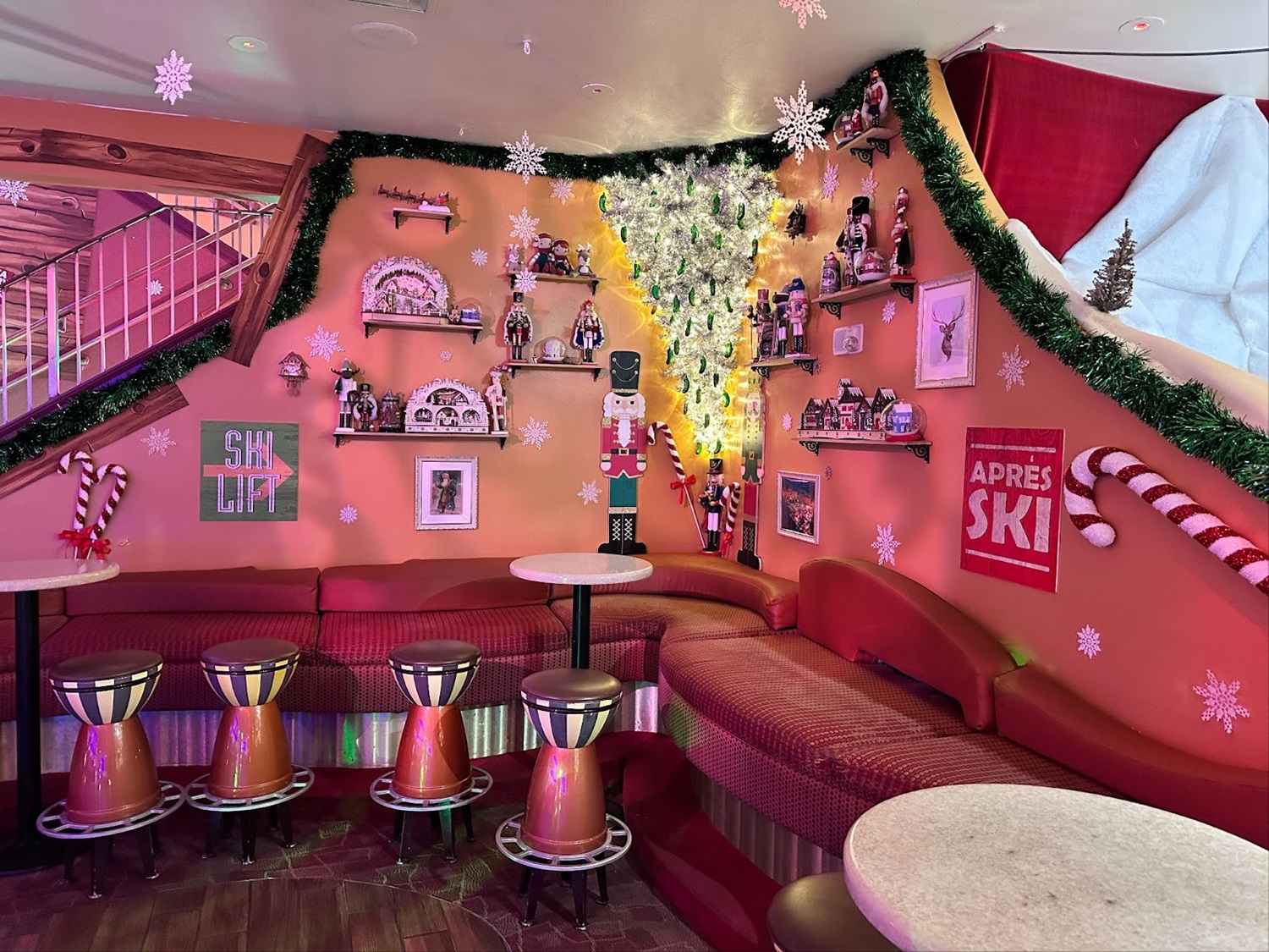 Officially opening on November 22nd, guests can step inside the Green and Red Coconut Club at Mistletoe Pines Ski Lodge to enjoy a festive celebration of holiday spirit.