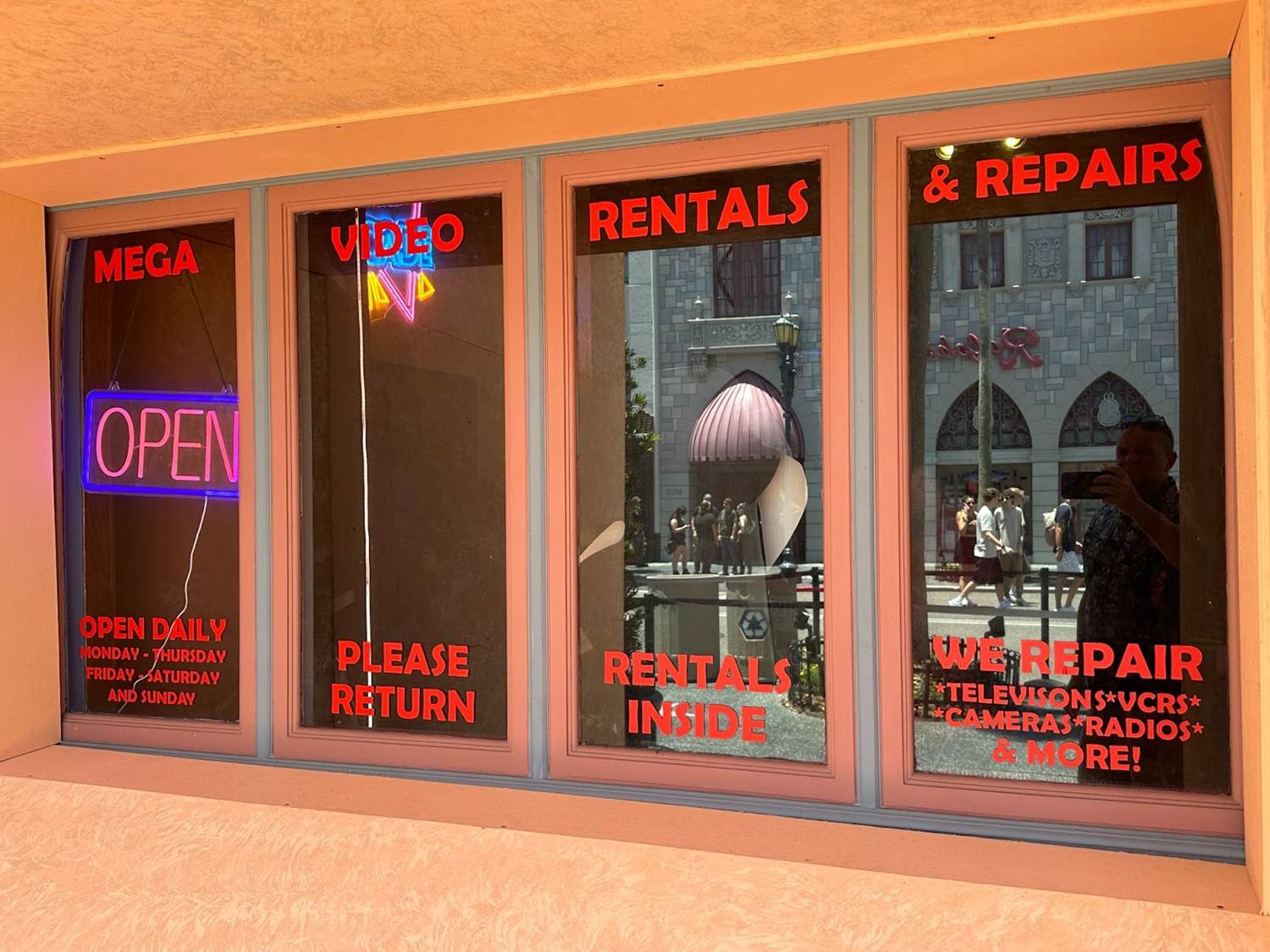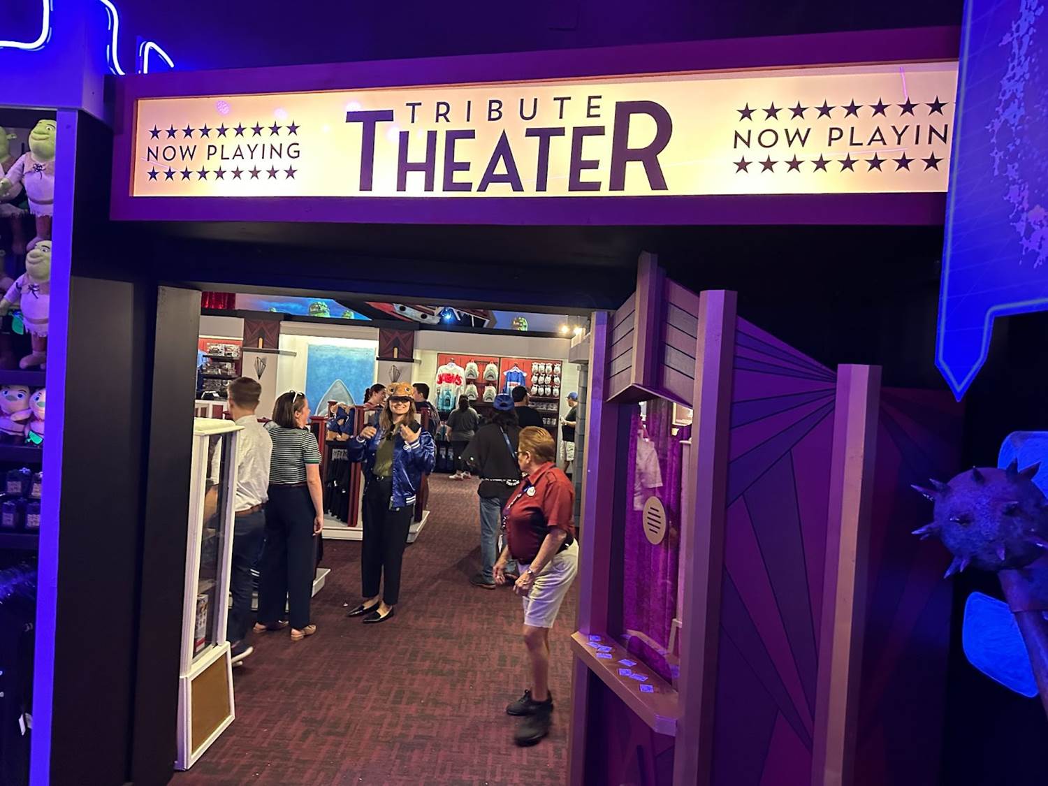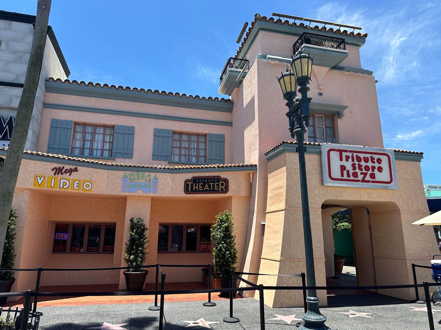 The new tribute store, located inside Universal Studios Florida, invites guests to the Tribute Store Plaza, a strip mall containing three stores: Mega Video, Mega Castle Arcade, and Tribute Theatre.