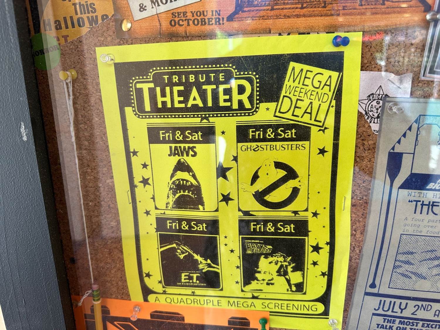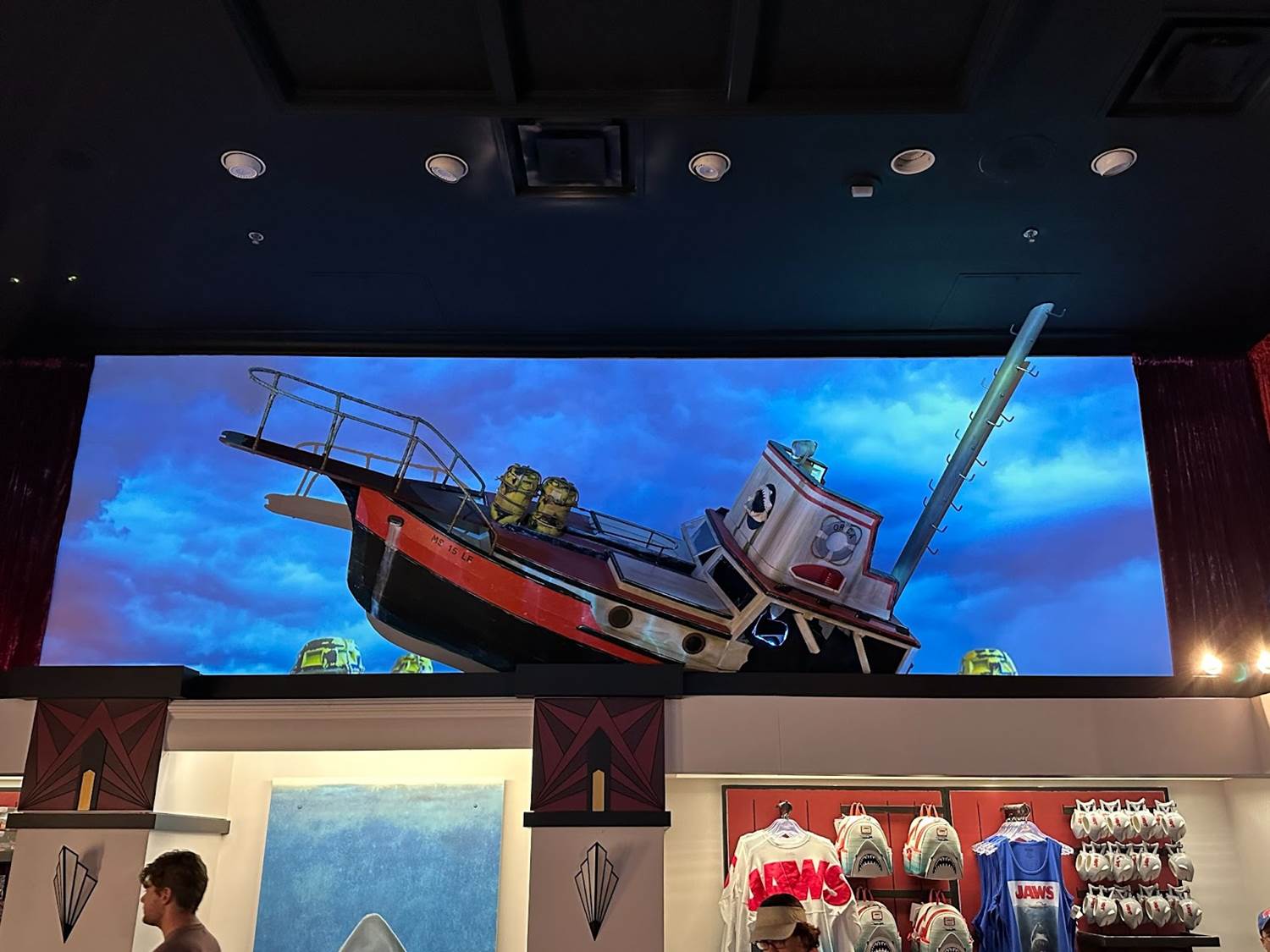 Lastly, visitors will explore the Tribute Theatre. The expansive area themed to a movie theatre lobby showcases four of Universal Orlando’s original attractions with E.T., Ghostbusters, Back to the Future, and Jaws. Guests will also find a Hollywood Walk of Fame star dedicated to Earl the Squirrel.