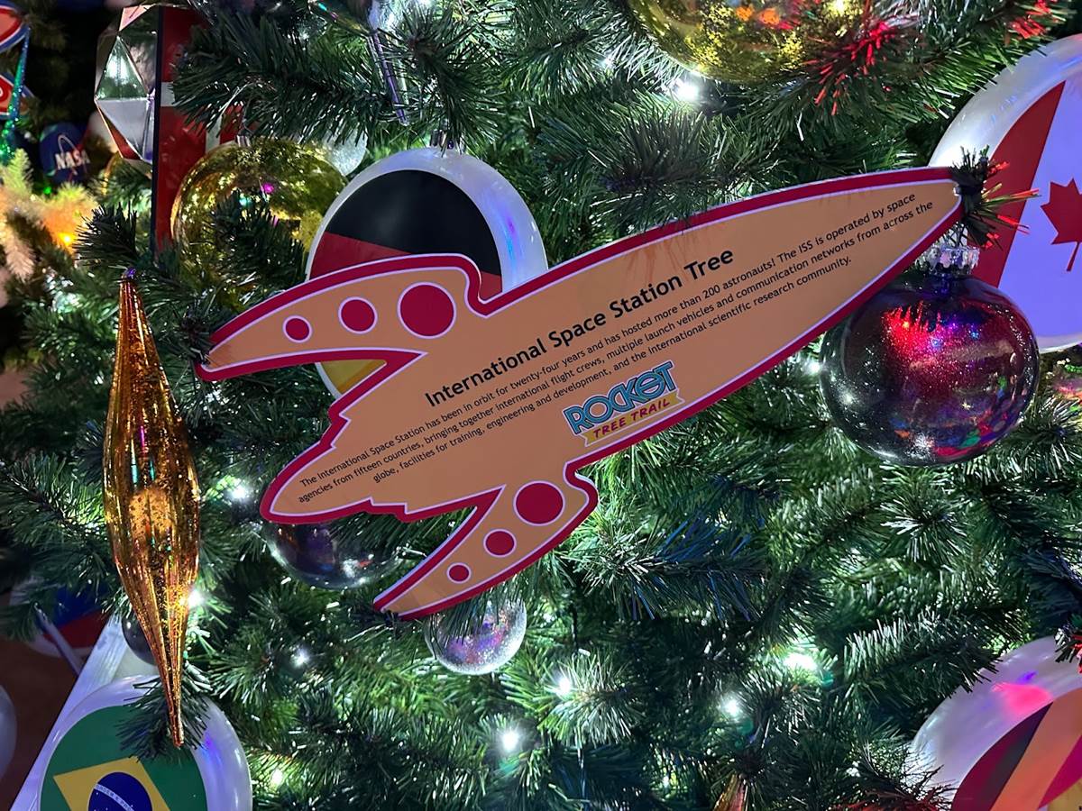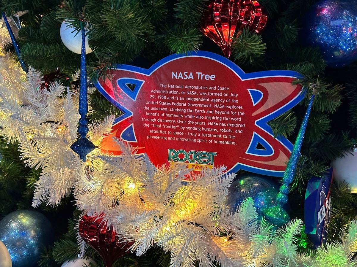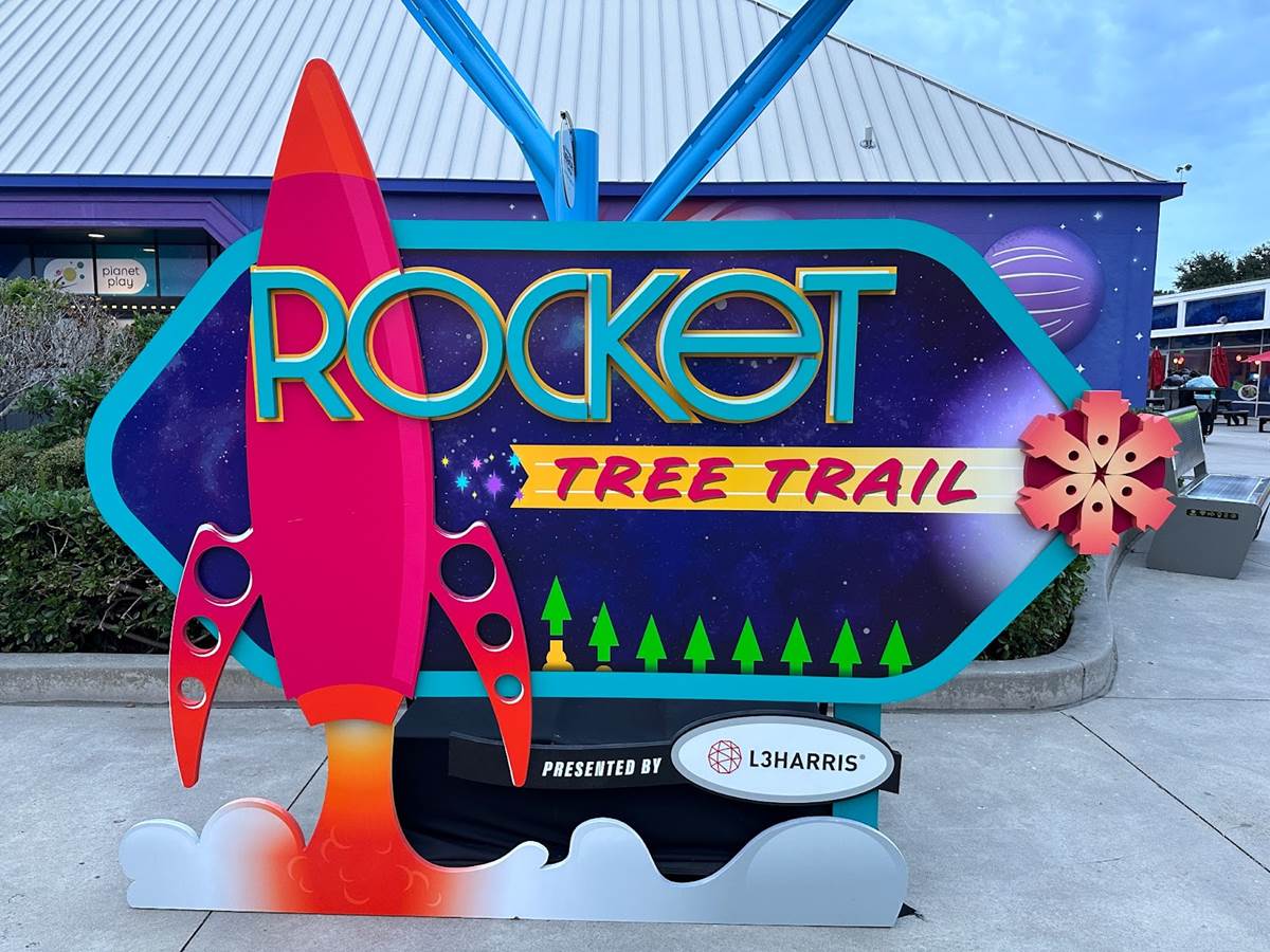 This year sees the addition of the all-new Rocket Tree Trail (sponsored by L3 Harris Technologies), usually located behind Orbit Cafe. When we visited, there was some inclement weather approaching for the weekend, so the trees were moved into the Gateway building.