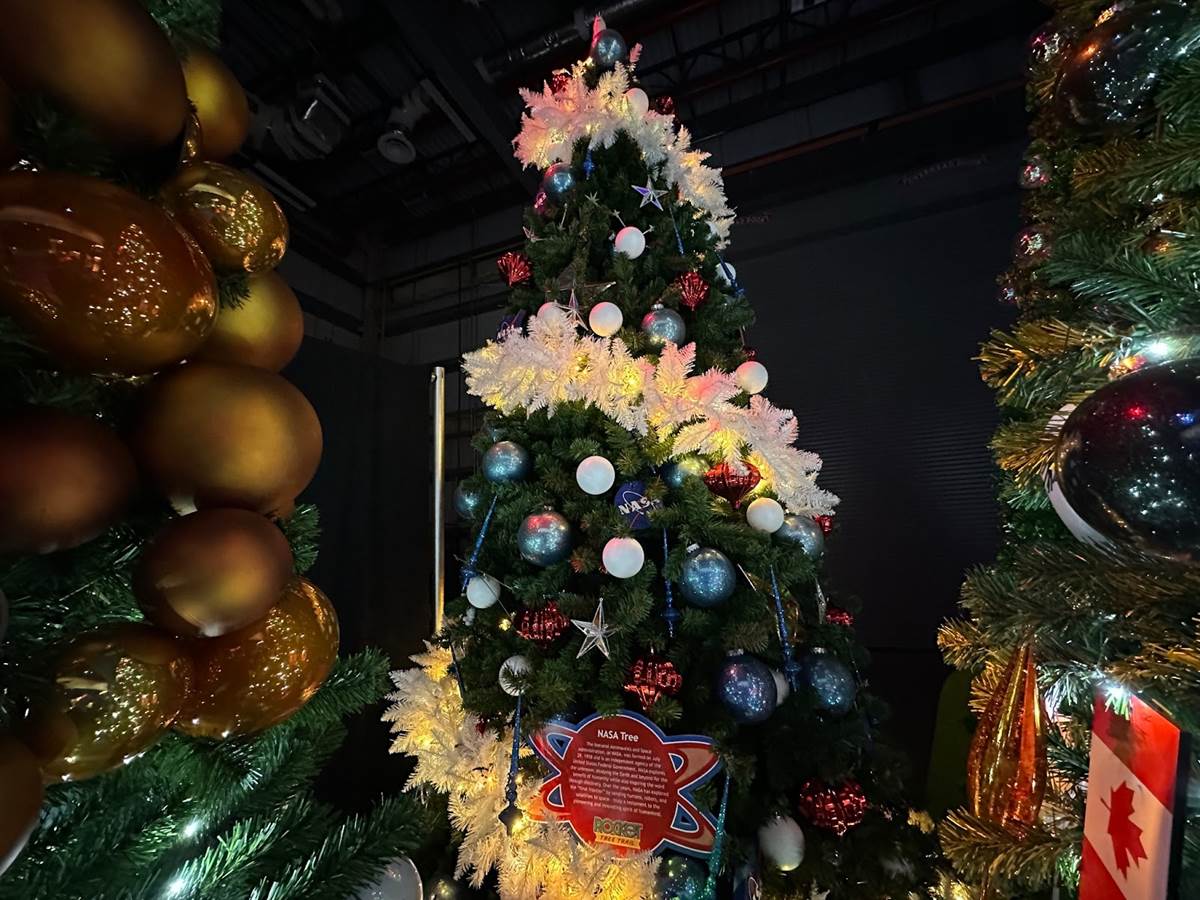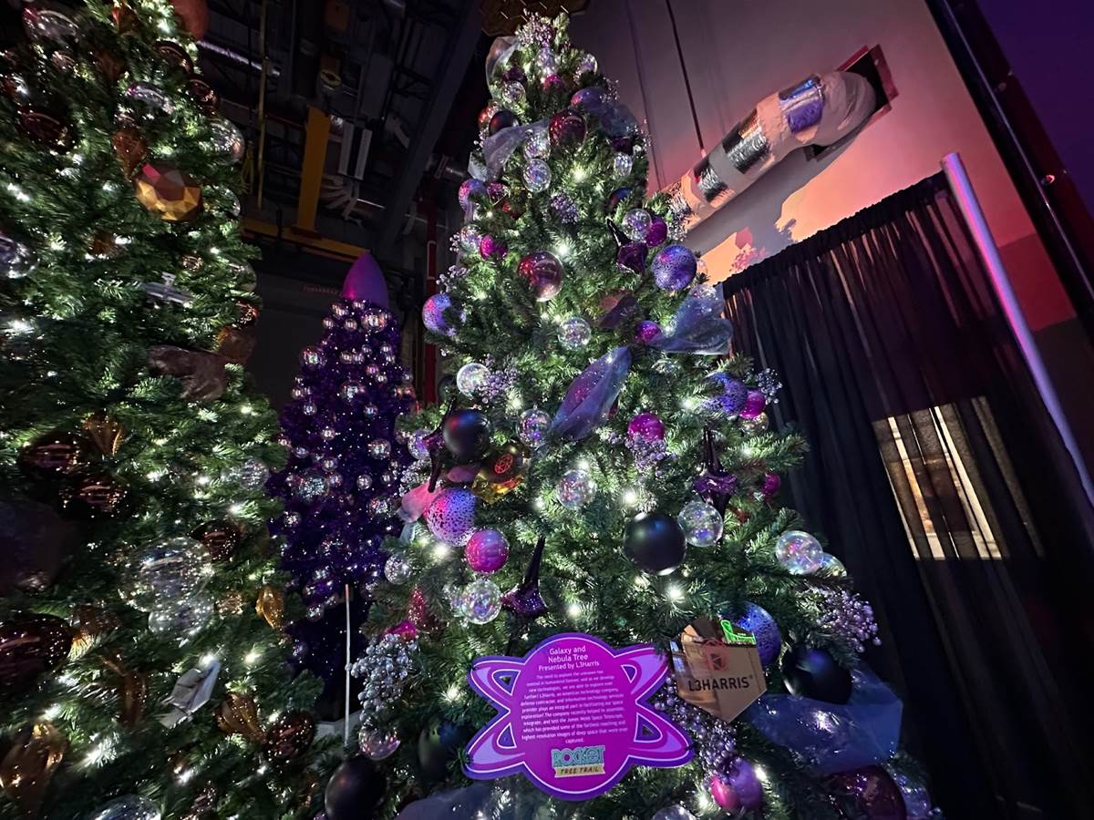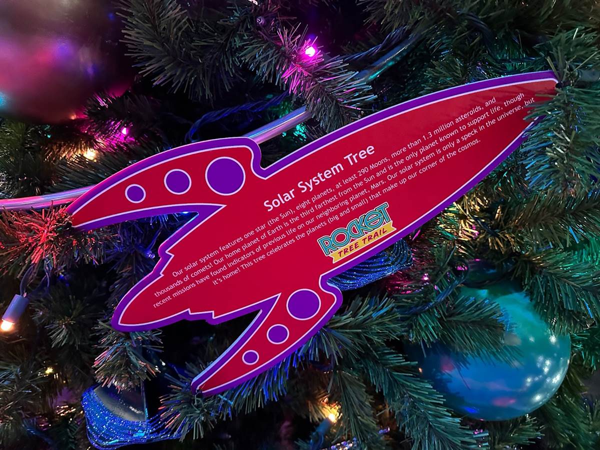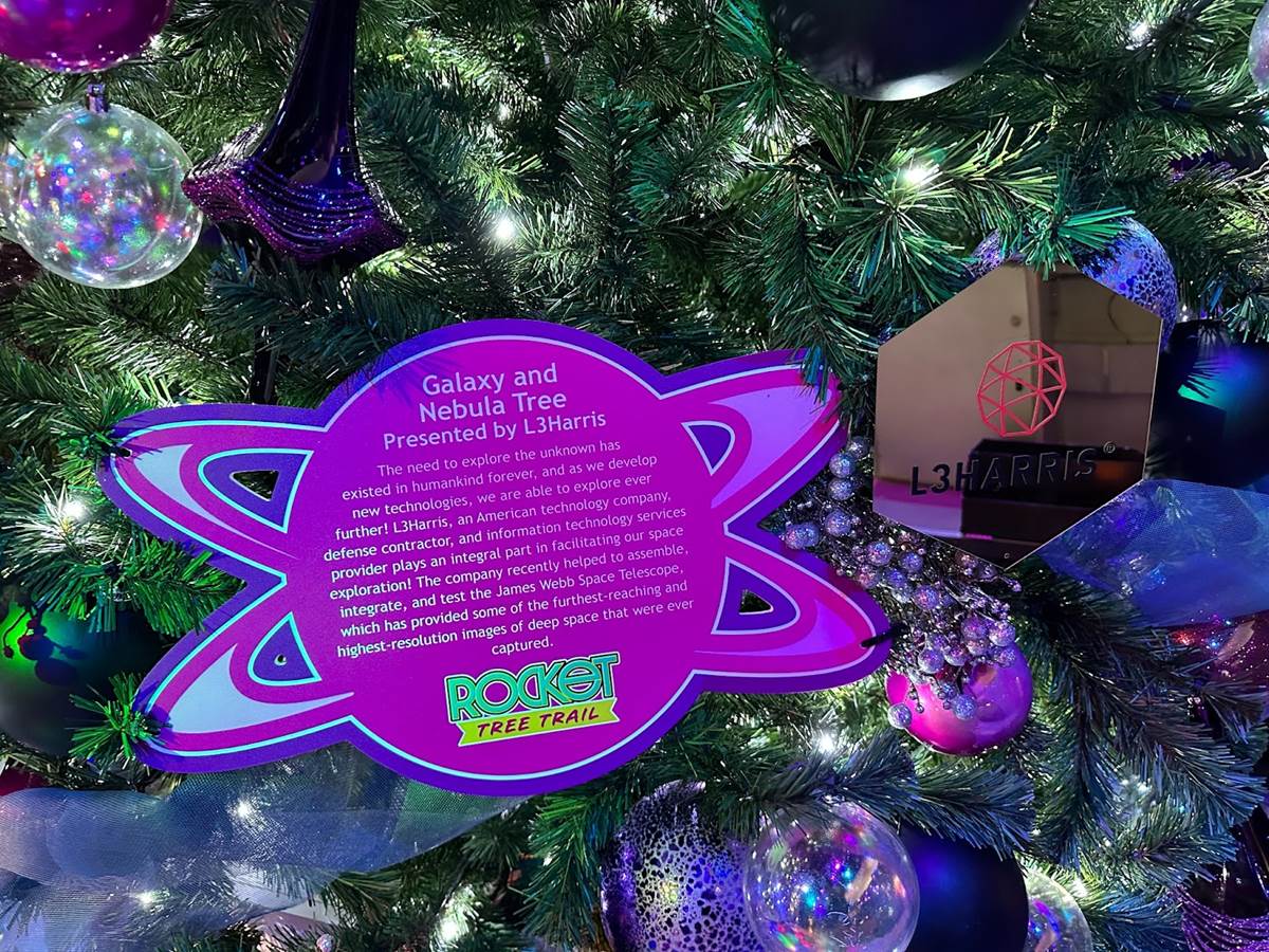 This year sees the addition of the all-new Rocket Tree Trail (sponsored by L3 Harris Technologies), usually located behind Orbit Cafe. When we visited, there was some inclement weather approaching for the weekend, so the trees were moved into the Gateway building.