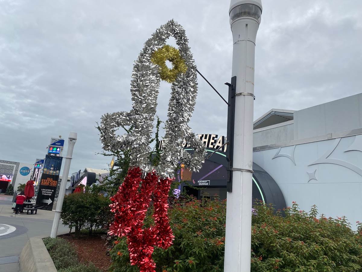 And finally, a look at some of the holiday decor and the Rocket Garden all lit up in festive colors.