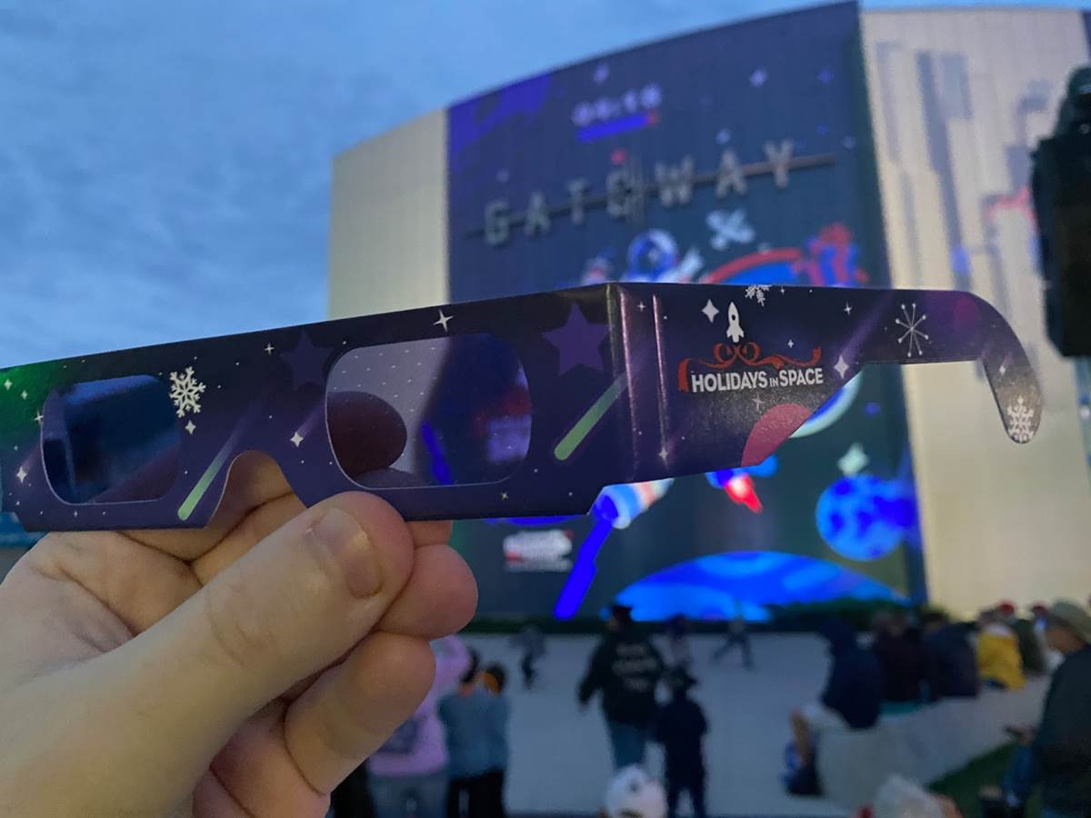 Guests are given these 3-D glasses, which turn strong lights into rockets.