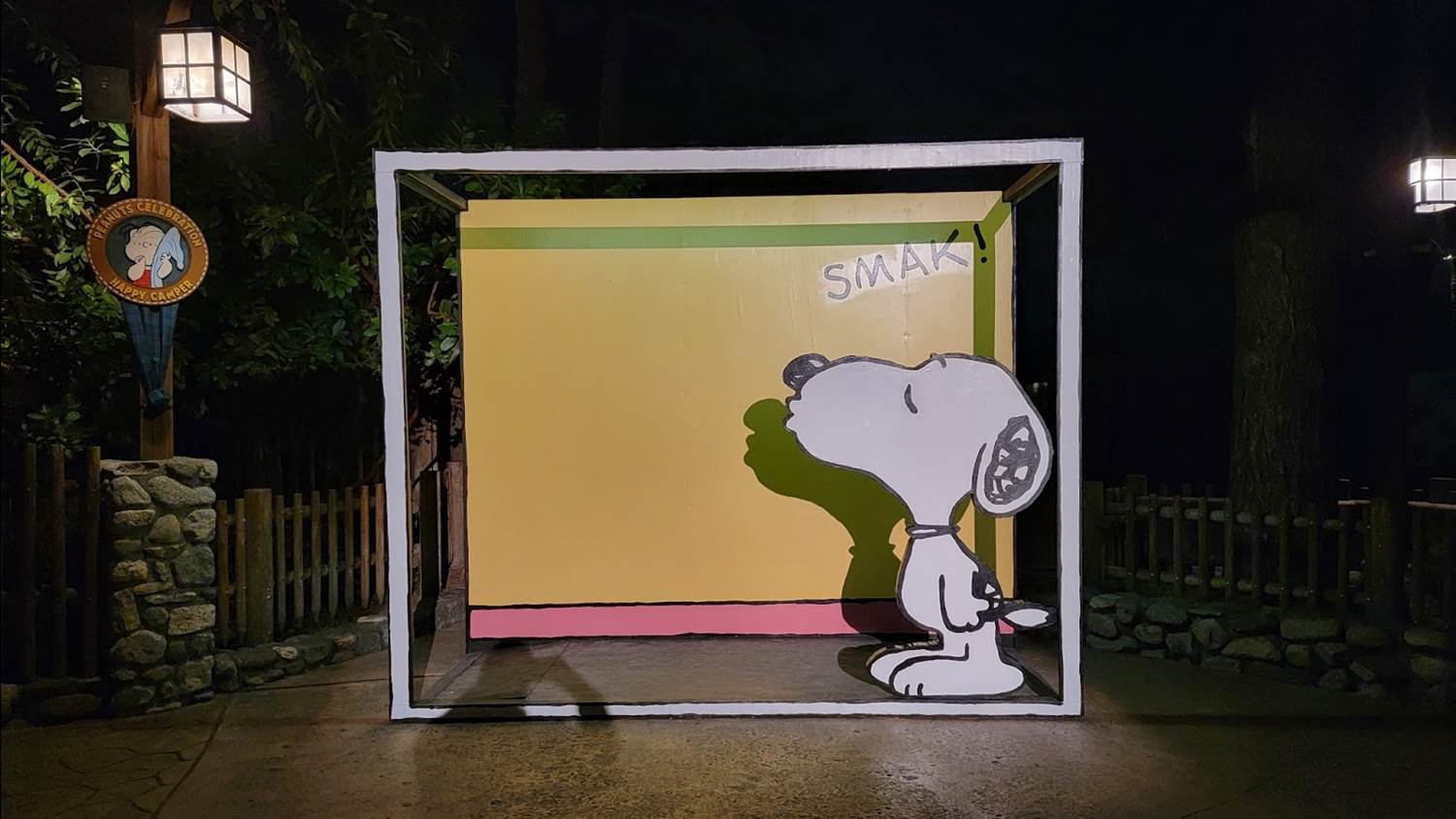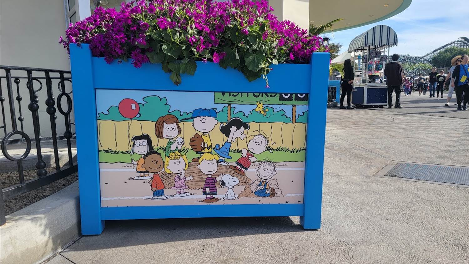 Around the Ghost Town area of Knott’s Berry Farm, more decorations featuring Snoopy and the gang beckon guests further into the park.