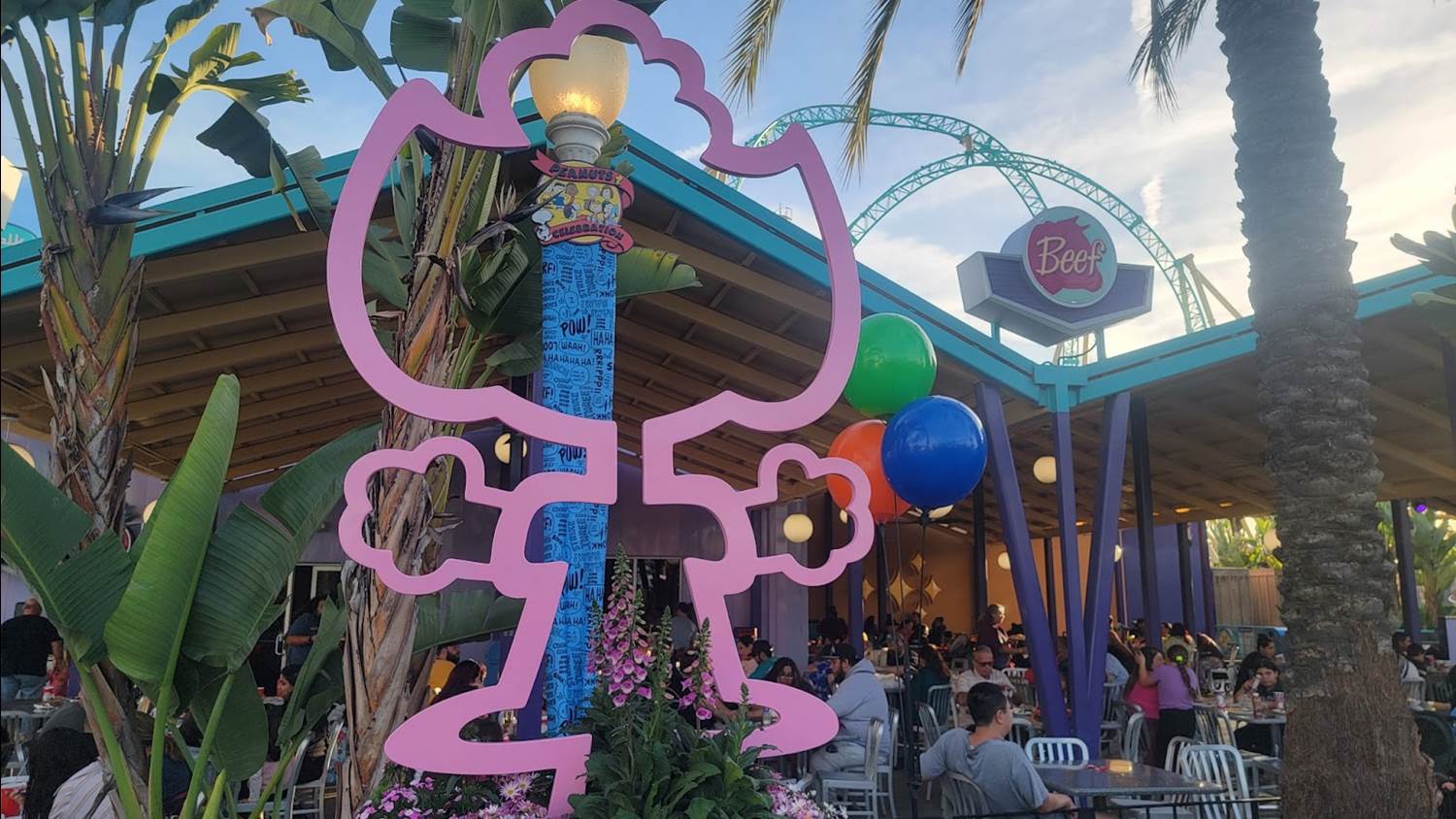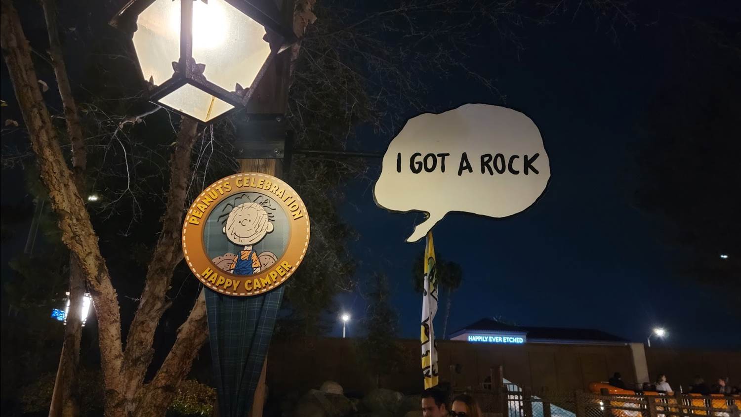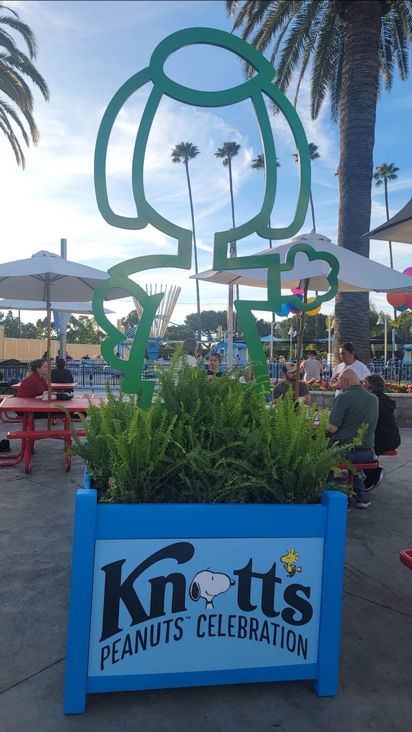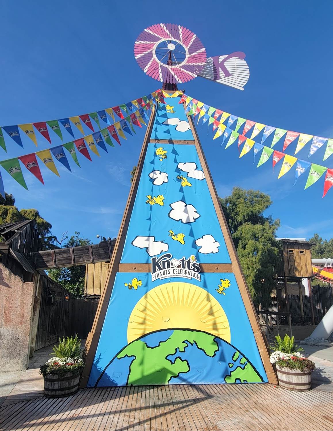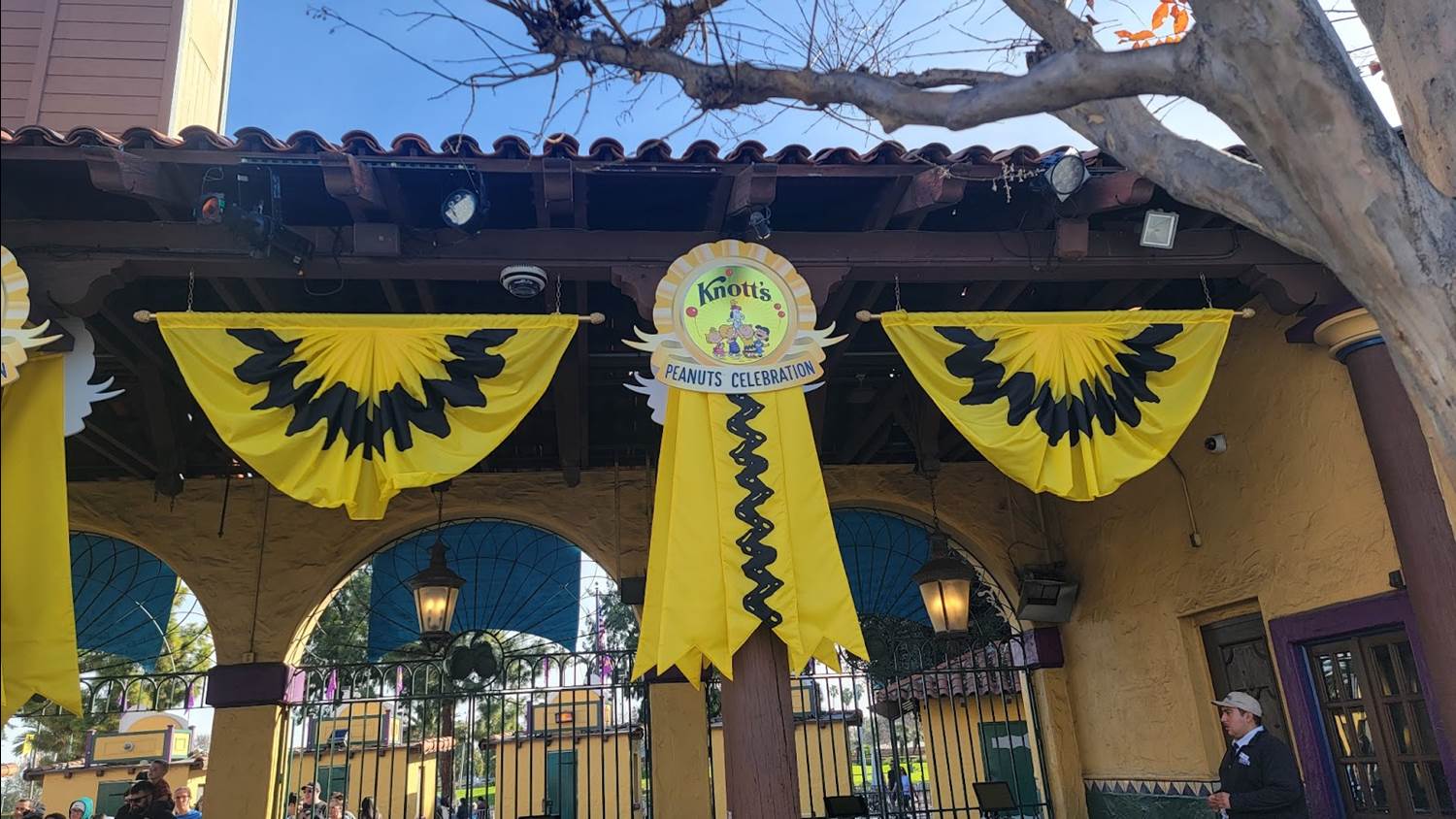 As you approach the entrance to Knott’s Berry Farm, it’s hard to miss that the PEANUTS Celebration is happening – with Charlie Brown-colored decor everywhere you look!