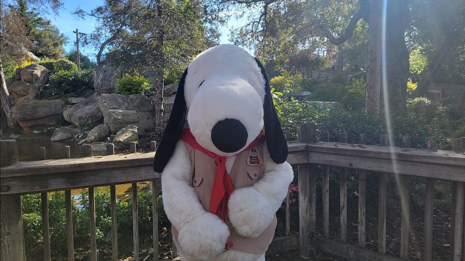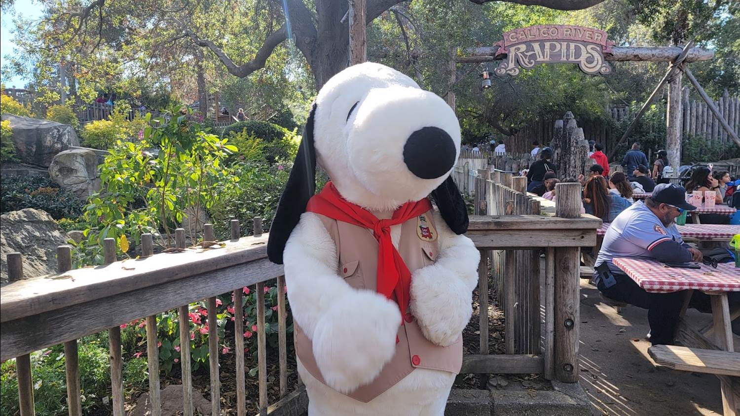 The main dog himself, Snoopy, is meeting guests near the entrance to Calico River Rapids this year.