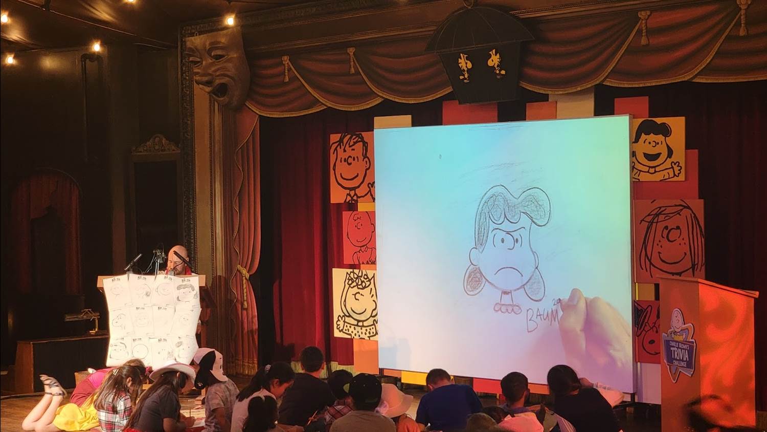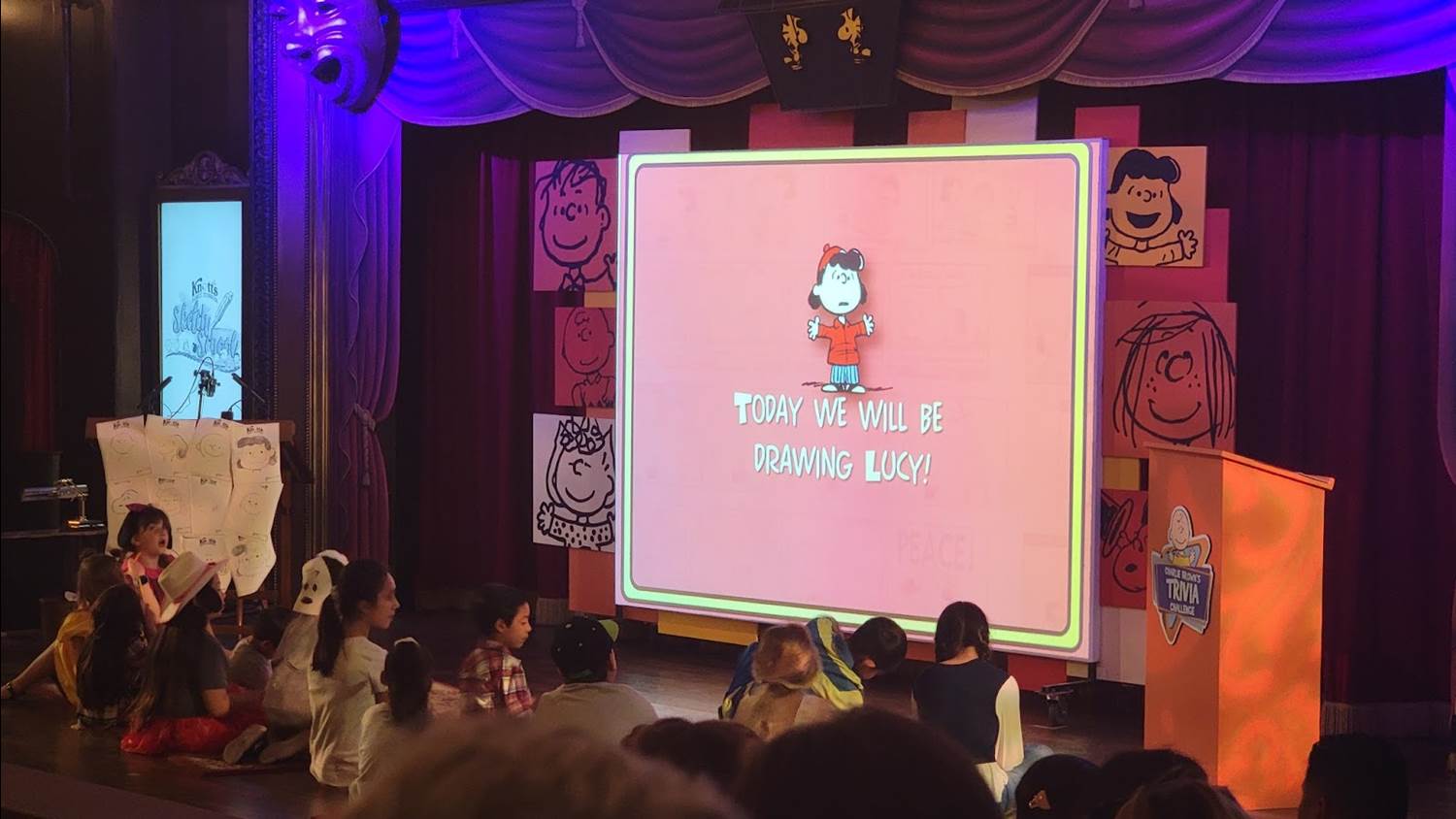 Nearby, in the famous Bird Cage Theatre, guests can learn to draw in the Peanuts Sketch School or take part in Charlie Brown’s Trivia Challenge. When we visited, we were able to learn how to draw Lucy!