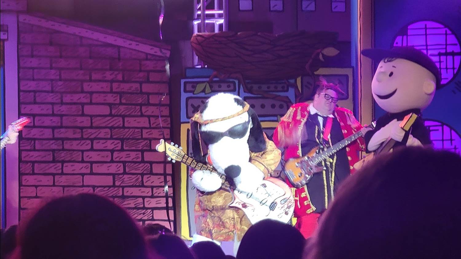Nighttime falls and brings with it the live rock ‘n roll show “Snoopy’s Legendary Rooftop Concert," which first debuted last year on the Calico Mine Stage. During the show, Snoopy takes on various guises, including a hippie-like rocker and even Prince.