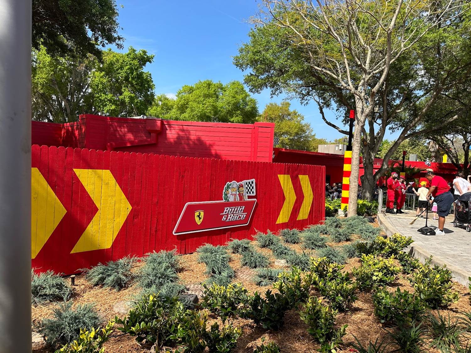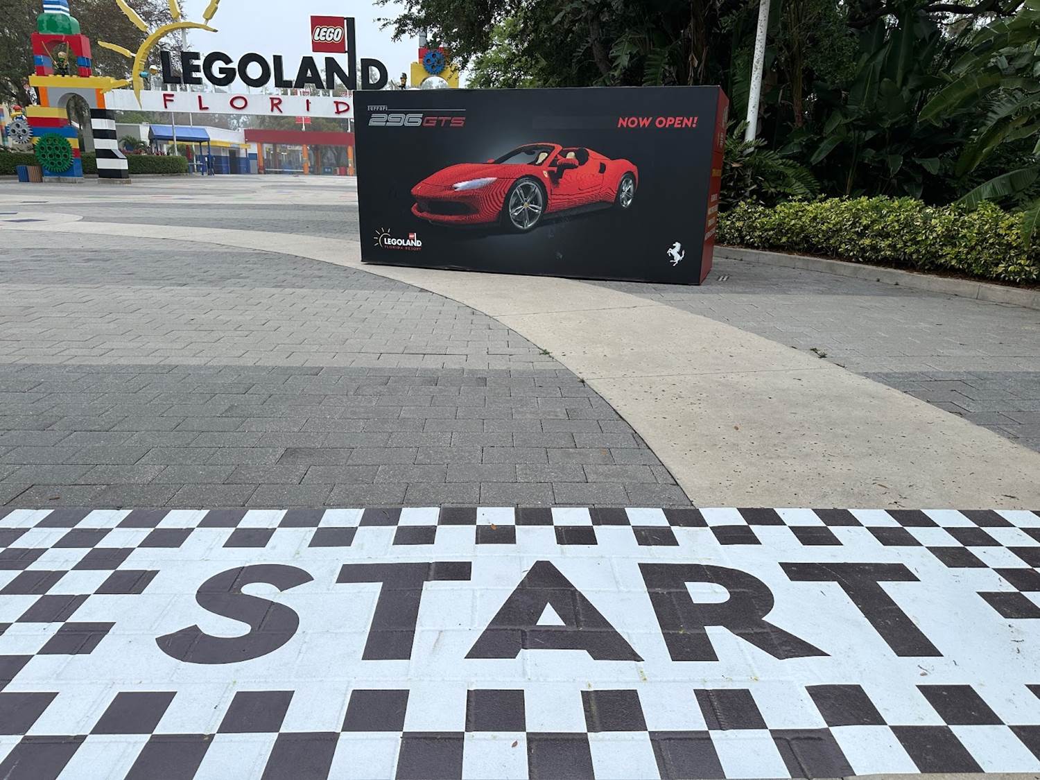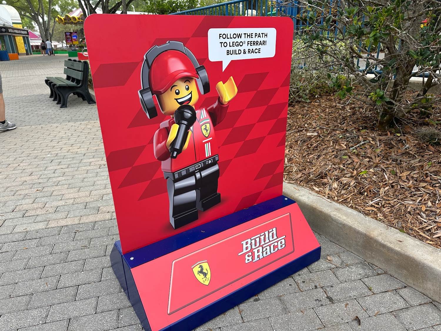 A clever marked pathway is set-up to help guests find the LEGO Ferrari Build & Race Experience.