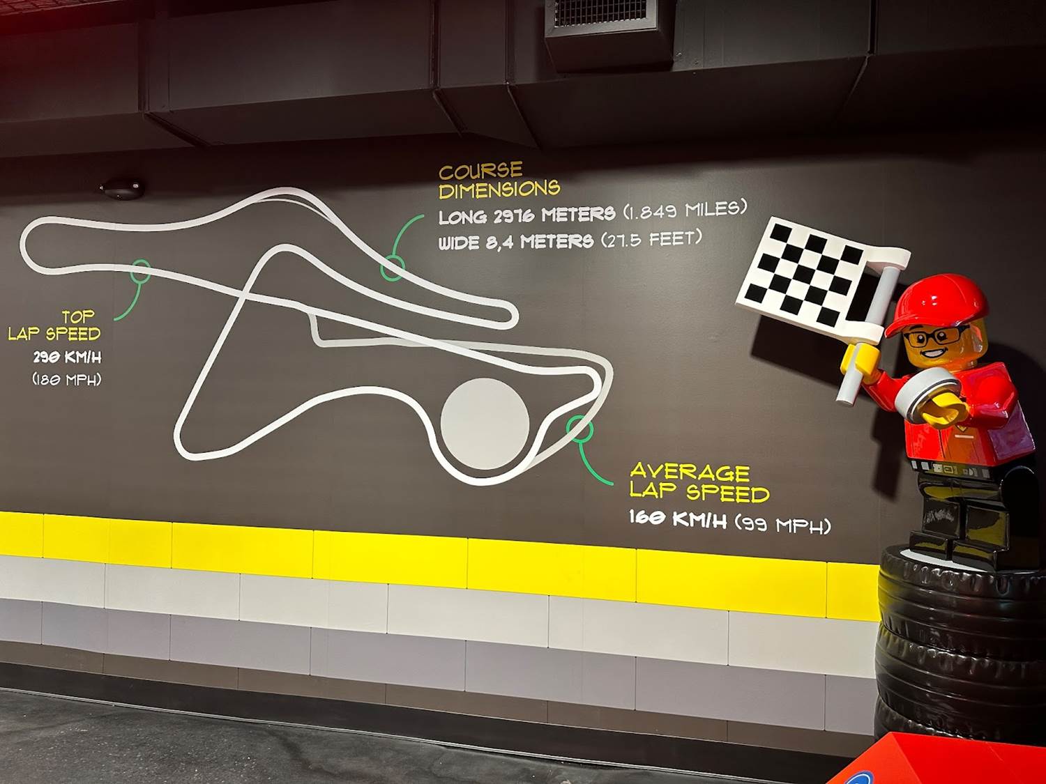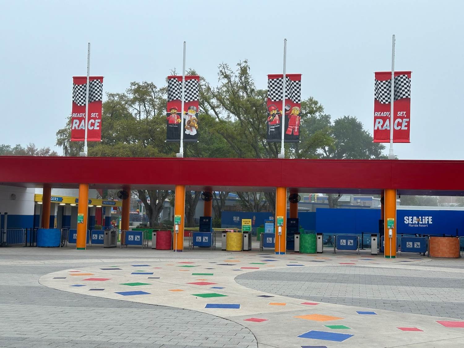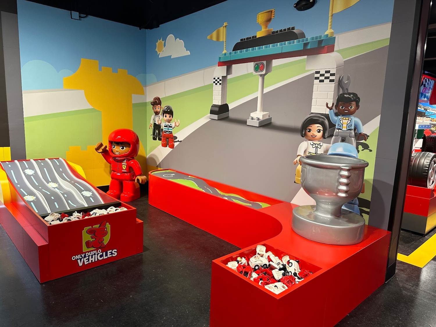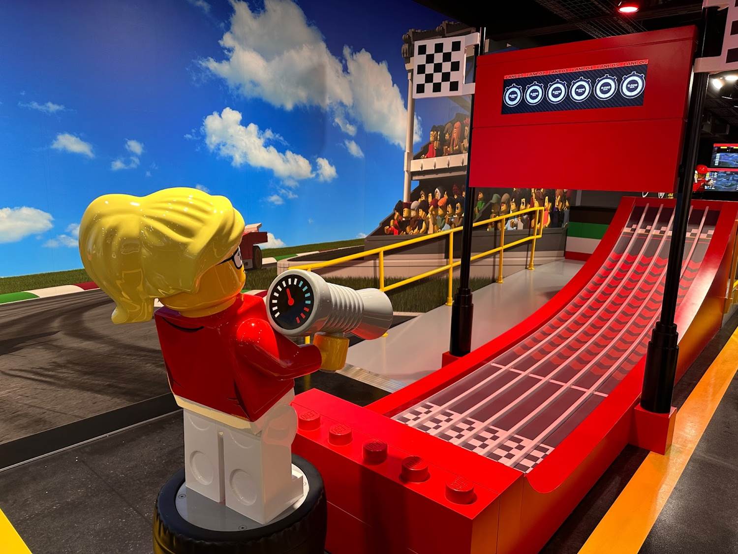 A clever marked pathway is set-up to help guests find the LEGO Ferrari Build & Race Experience.
