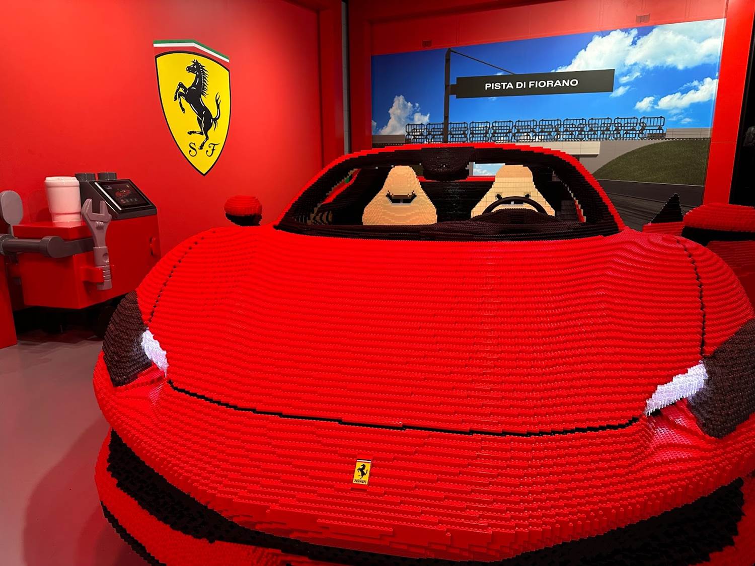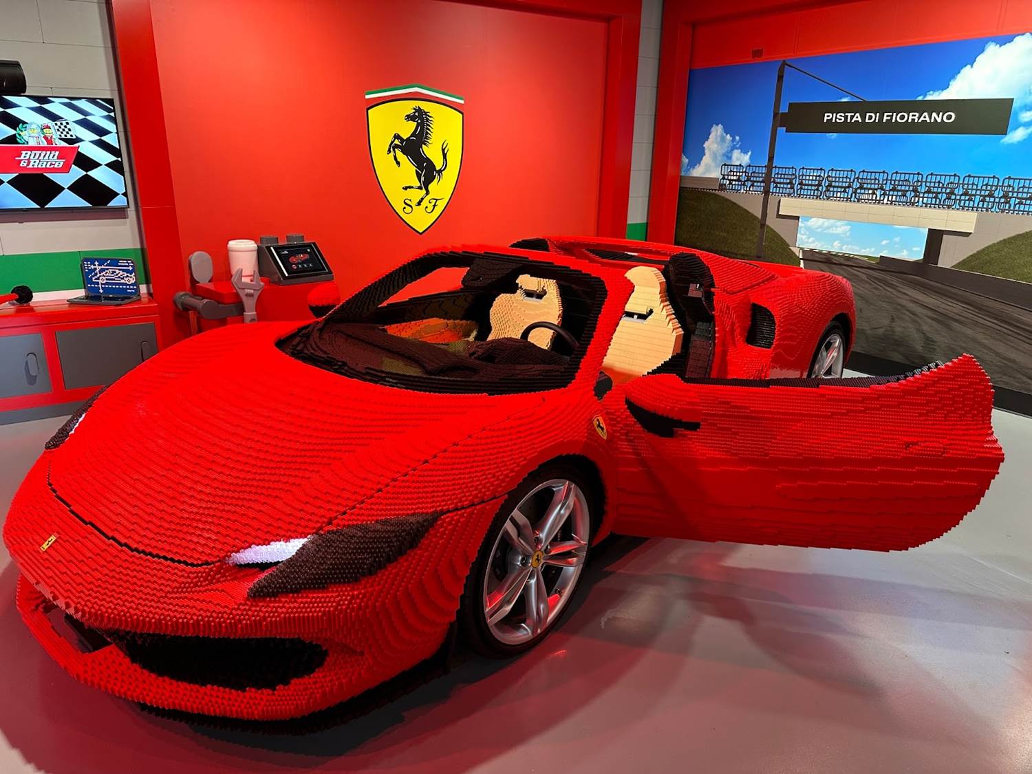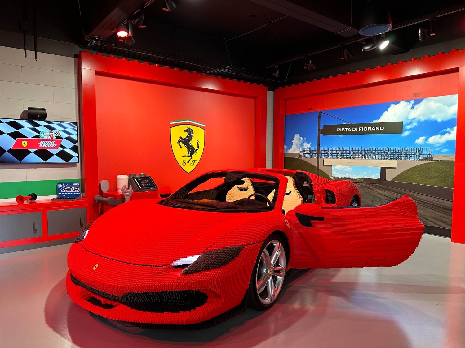 The centerpiece of the experience is a LEGO Ferrari 296 GTS model, which took Master Model Builders 1,850 hours to build. This LEGOLAND “pit crew" involved a designer, six Master Model Builders and three animators to ensure every detail matched that of the real sports car itself. Matching a Ferrari 296 GTS to the finest detail, the LEGO version is 15 feet long by 7 1/2 feet wide by 4 feet tall.