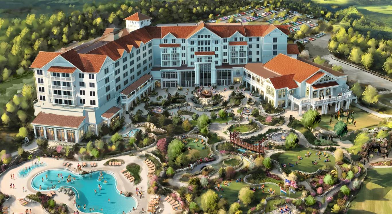 - The new resort will offer 262 guest rooms, a full-service restaurant, 17,000 square feet of indoor and outdoor meeting space, indoor and outdoor pools, stunning views of the Ozarks, and seamless access to Silver Dollar City and White Water.