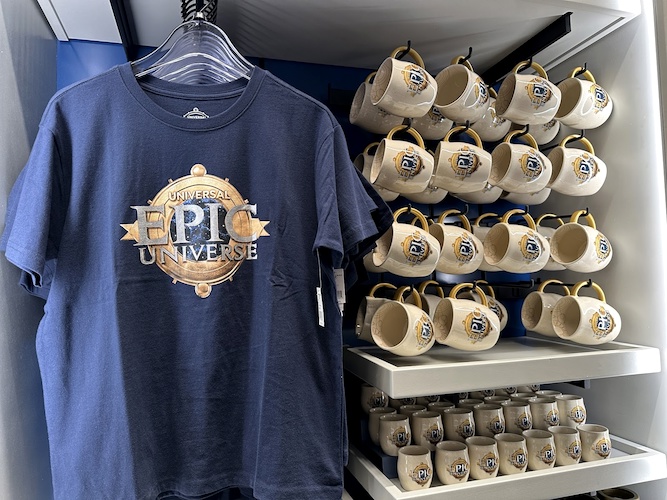 There is also a pantheon of Universal Epic Universe logo merchandise. A number of pieces we’ve seen previously at the Universal Epic Universe Preview Center at Universal CityWalk or the new store at the Orlando International Airport.