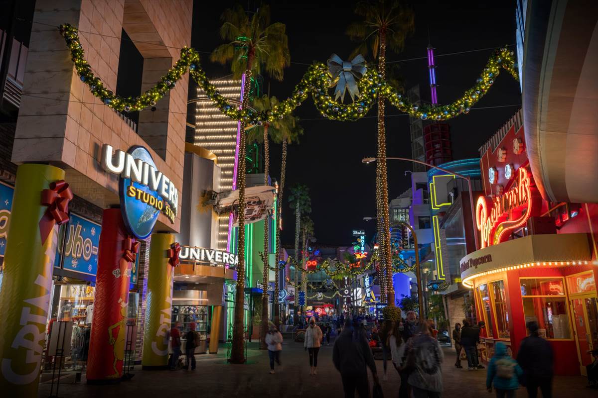 - Adding to the theme park activities, Universal CityWalk Hollywood will be dressed for the holiday season with spirited décor and a 40-foot-tall Christmas tree featuring more than 200,000 LED lights.
