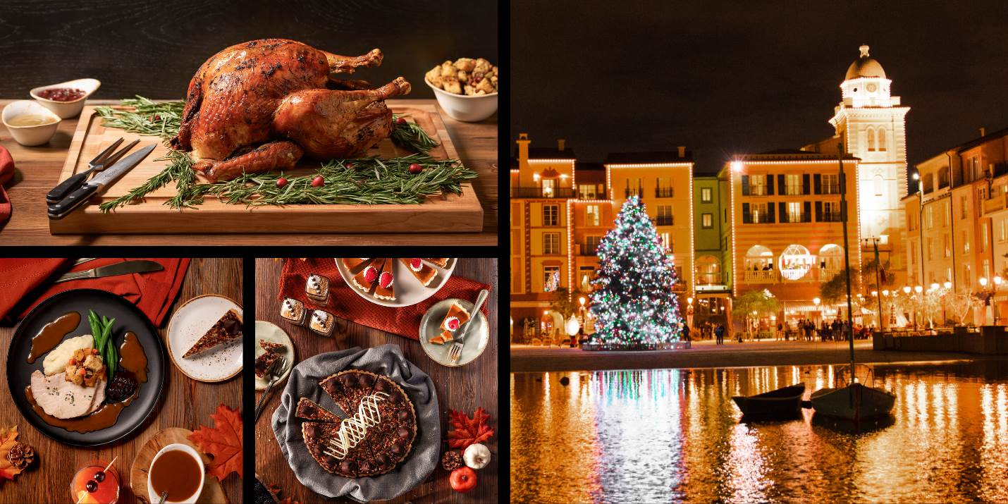 - Loews Portofino Bay will also host a lavish three-course Thanksgiving dinner at Mama Della’s Ristorante featuring seasonal offerings like creamy garlic cauliflower soup, pan-seared Chilean duck breast, and a dark chocolate praline crunch bar. To enhance the holiday with Italian charm, opera singers and musicians will soundtrack your Thanksgiving celebration. The prix-fixe Thanksgiving dining experience is offered from 5PM-10PM and will cost $70/adult and $25/child aged 3-9. You can check out the menu and make reservations here.