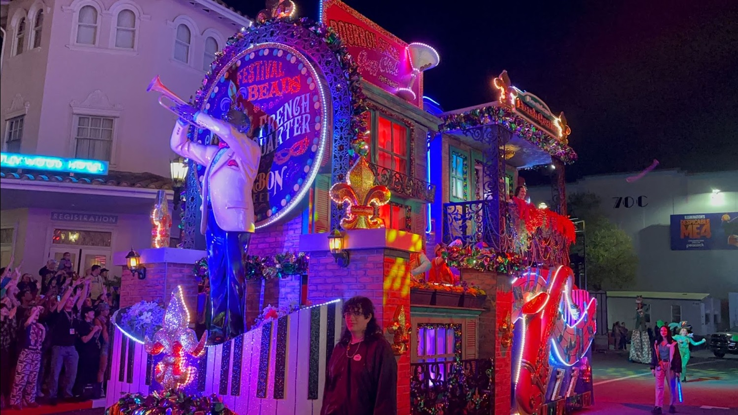 Guests can witness larger than life floats, filled with Universal guests throwing beads, along with a live band, police escorts, and numerous live performers bringing the experience to life.