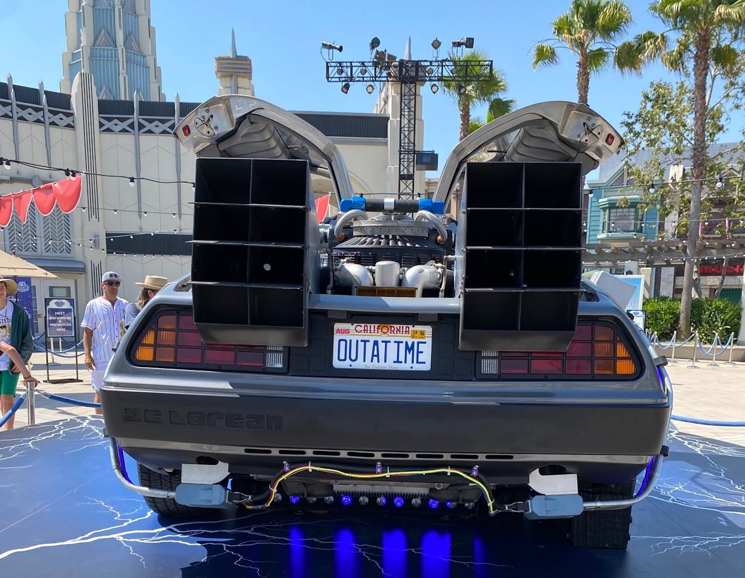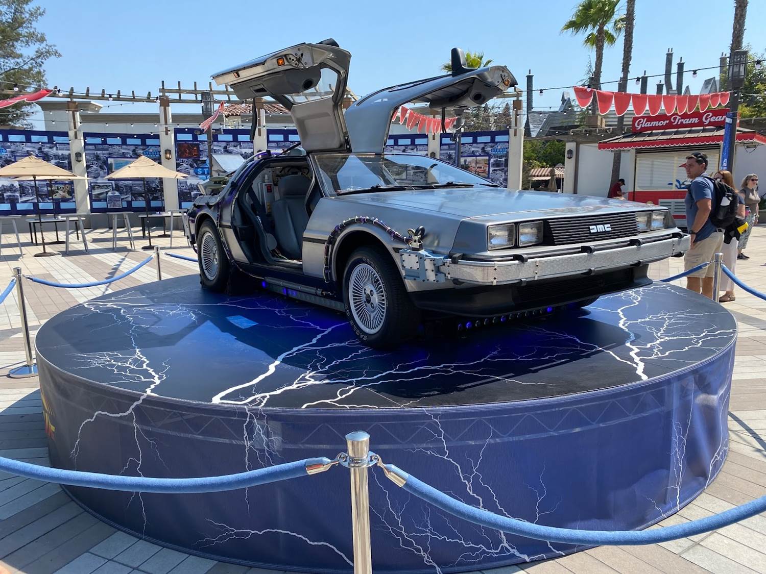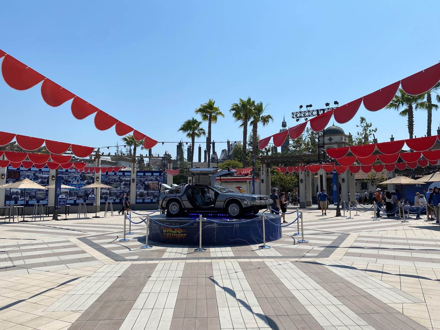 The grand centerpiece of Universal Plaza is a replica DeLorean from the Back to the Future franchise.