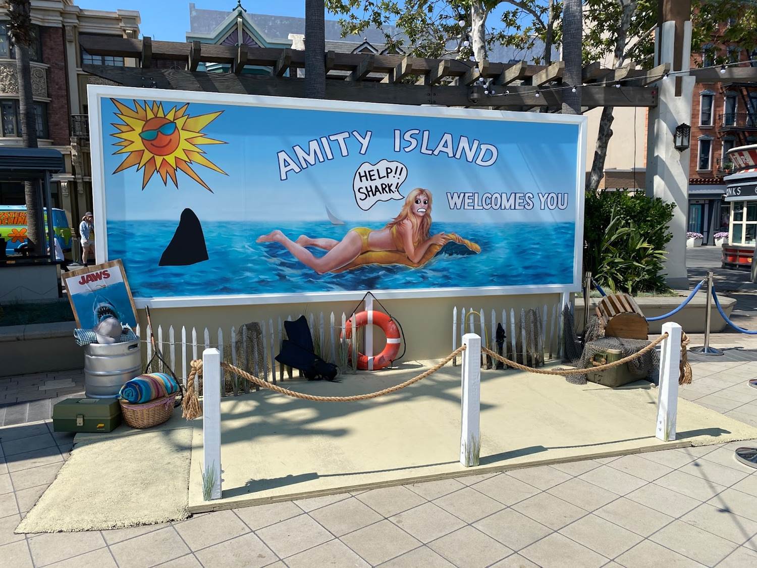 There are a collection of photo-ops inspired by some iconic elements of the Studio Tour, such as Amity Island from Jaws, the Six Points Texas Wild West facades, and the long-gone Ice Tunnel – one of the earliest attractions from the Studio Tour.