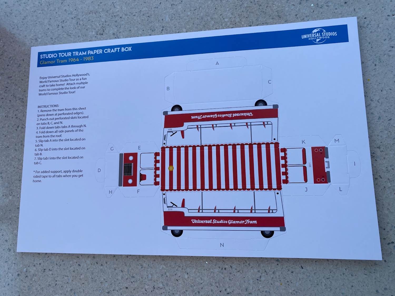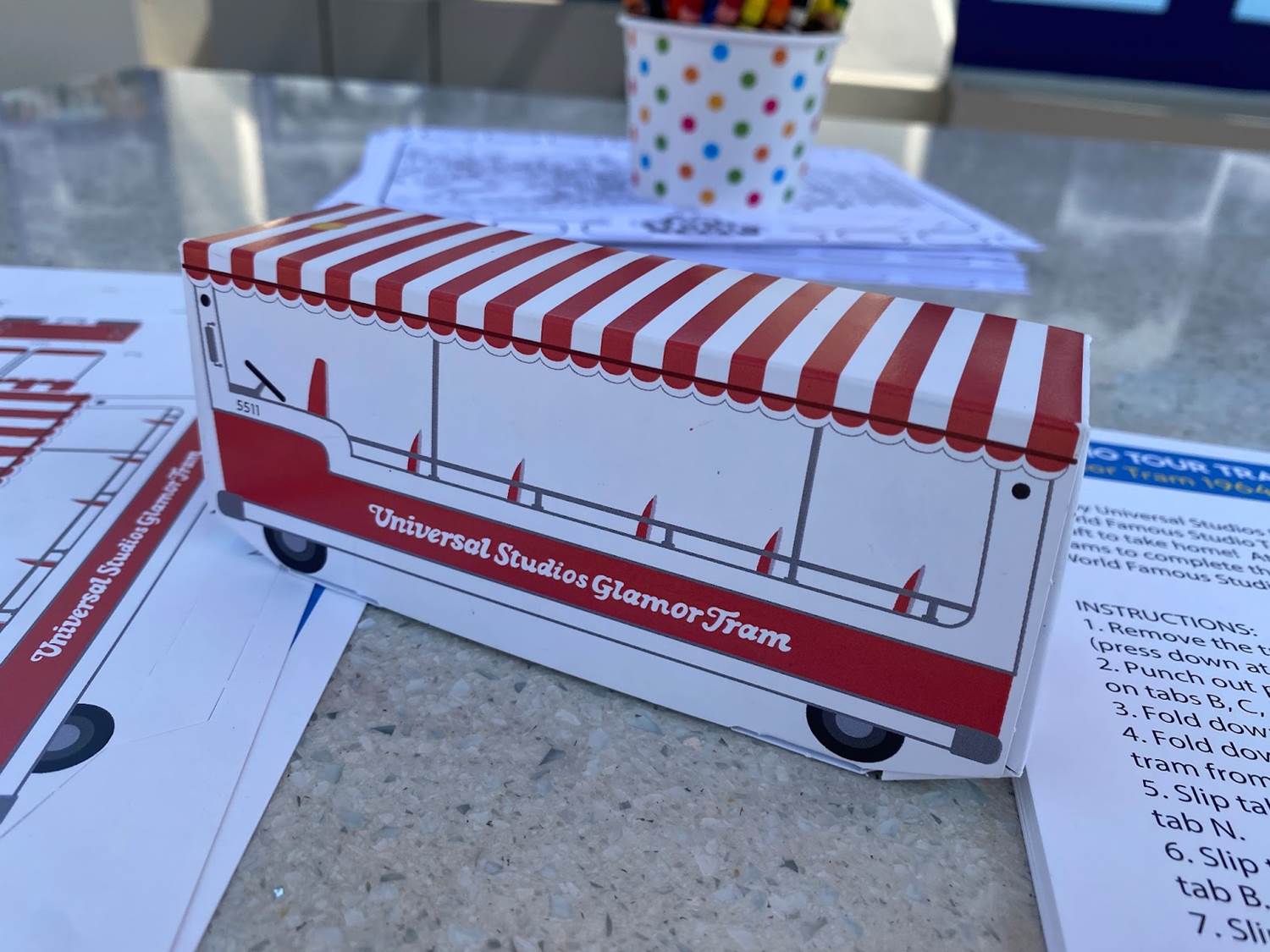 Guests can take a little break from the thrills by putting together a cardboard version of the classic Glamor Trams or coloring in a Studio Tour scene.