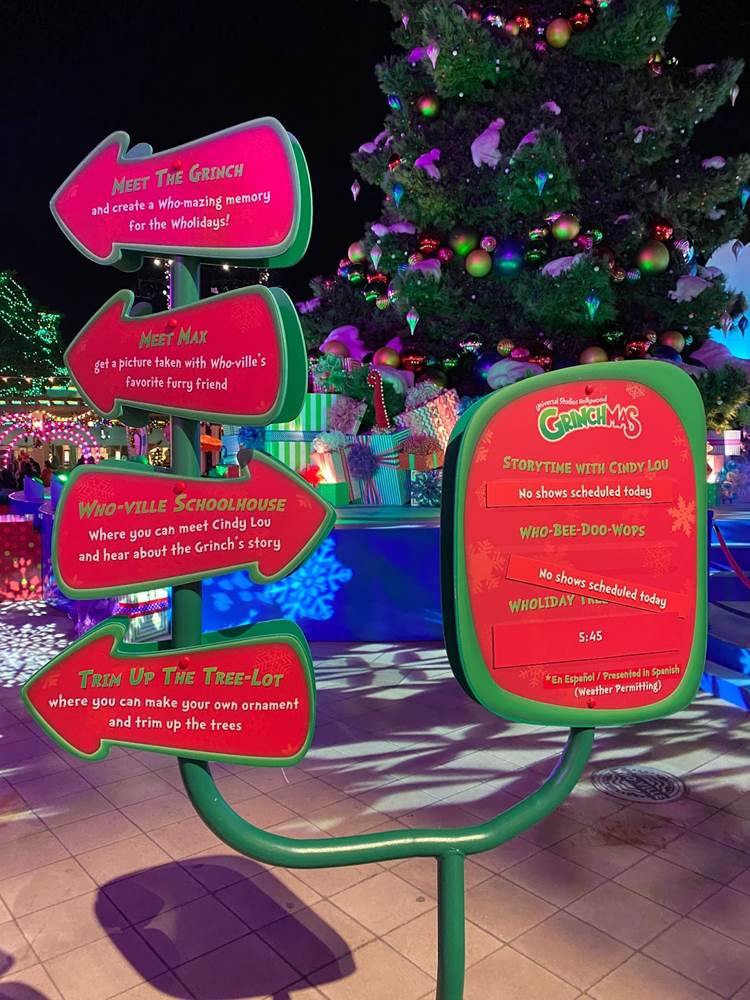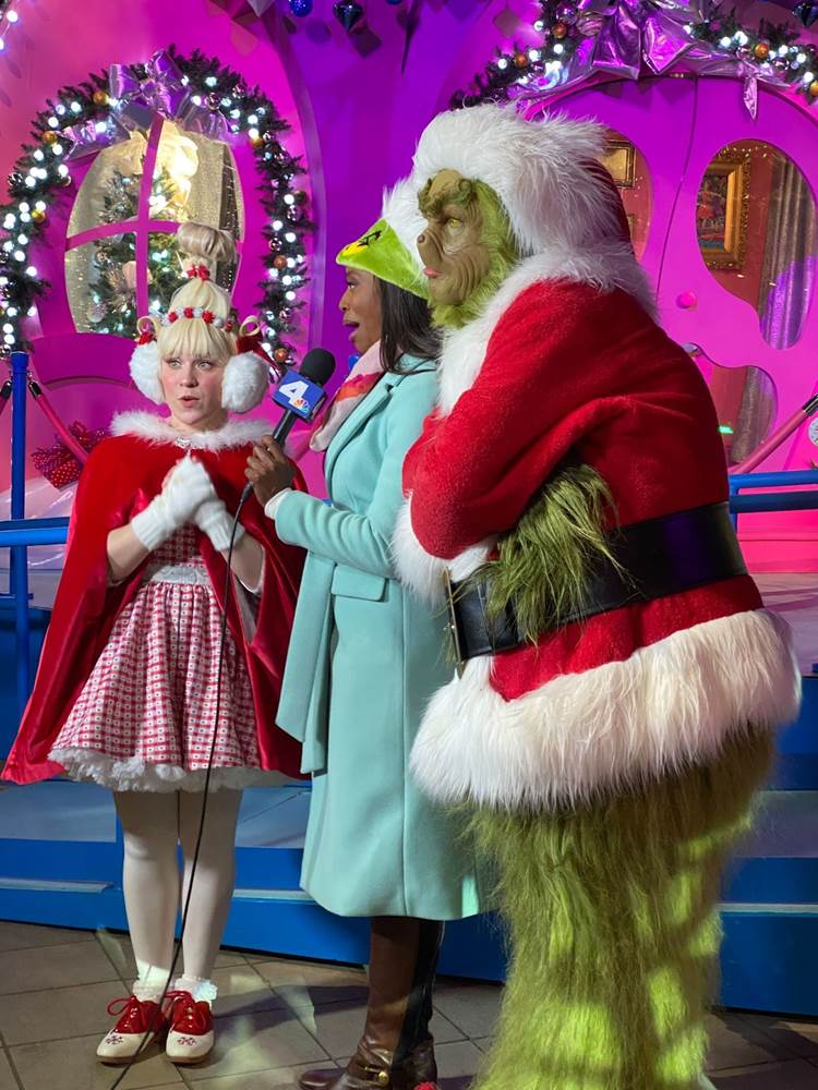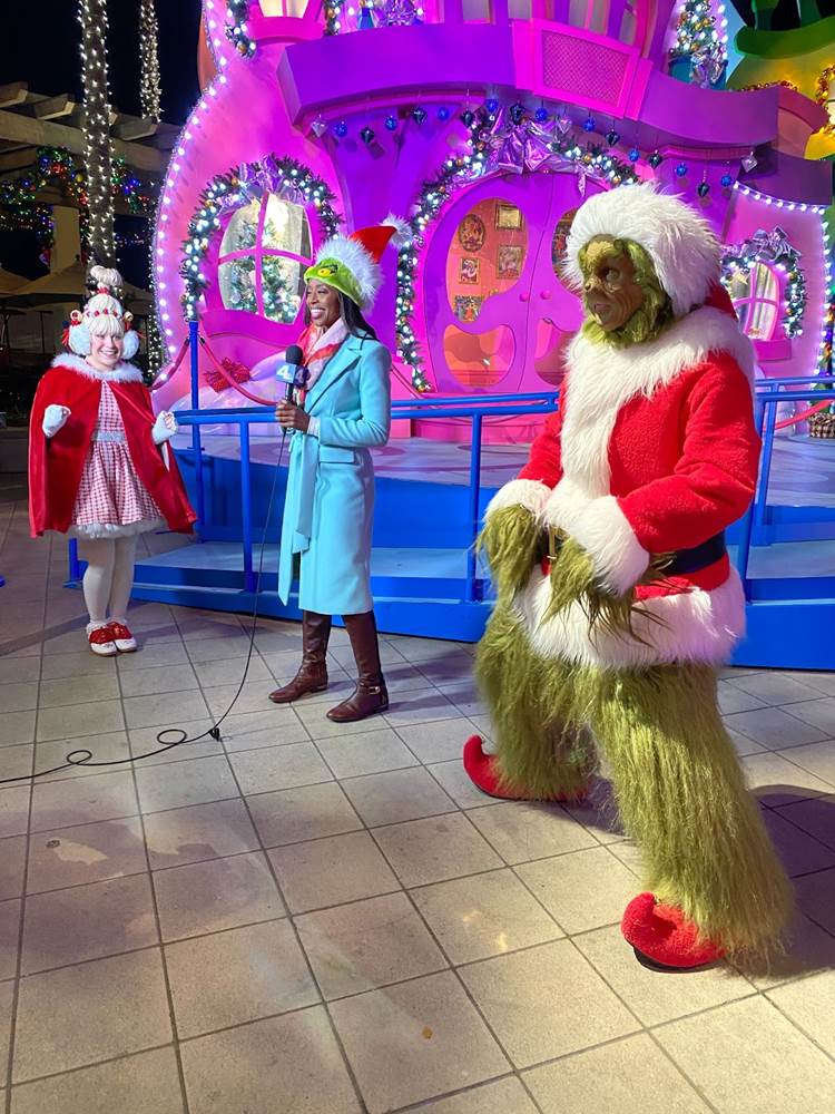 I also took some photos around the Grinchmas area, and below you can check out the various sections of this holiday overlay including merchandise and food stands, meet-and-greet spots, and photo ops. While I was there I even spotted the Grinch taking part in local news coverage. Another Grinchmas show available to guests (especially targeted at the younger variety) is called “Storytime with Cindy Lou."