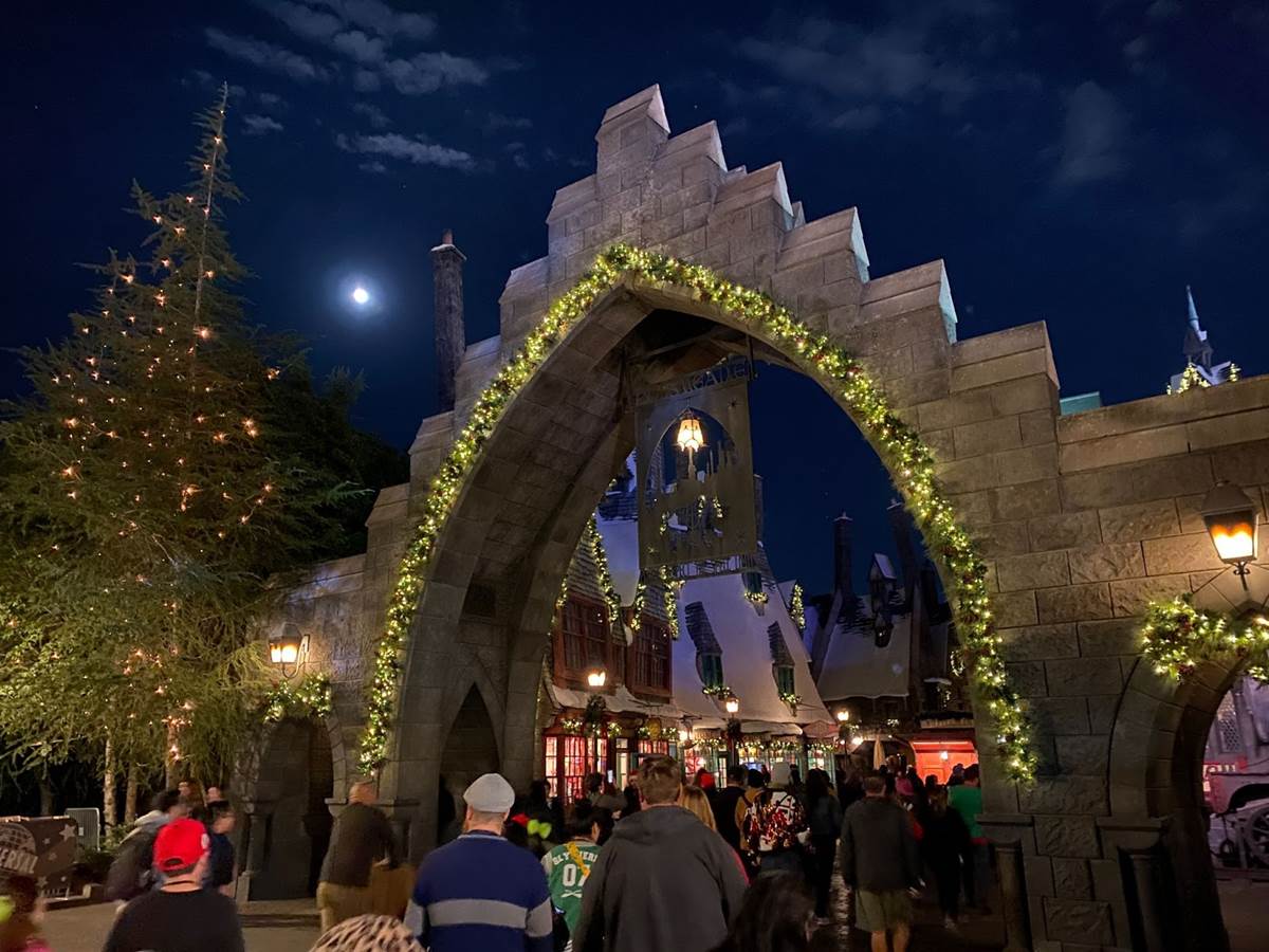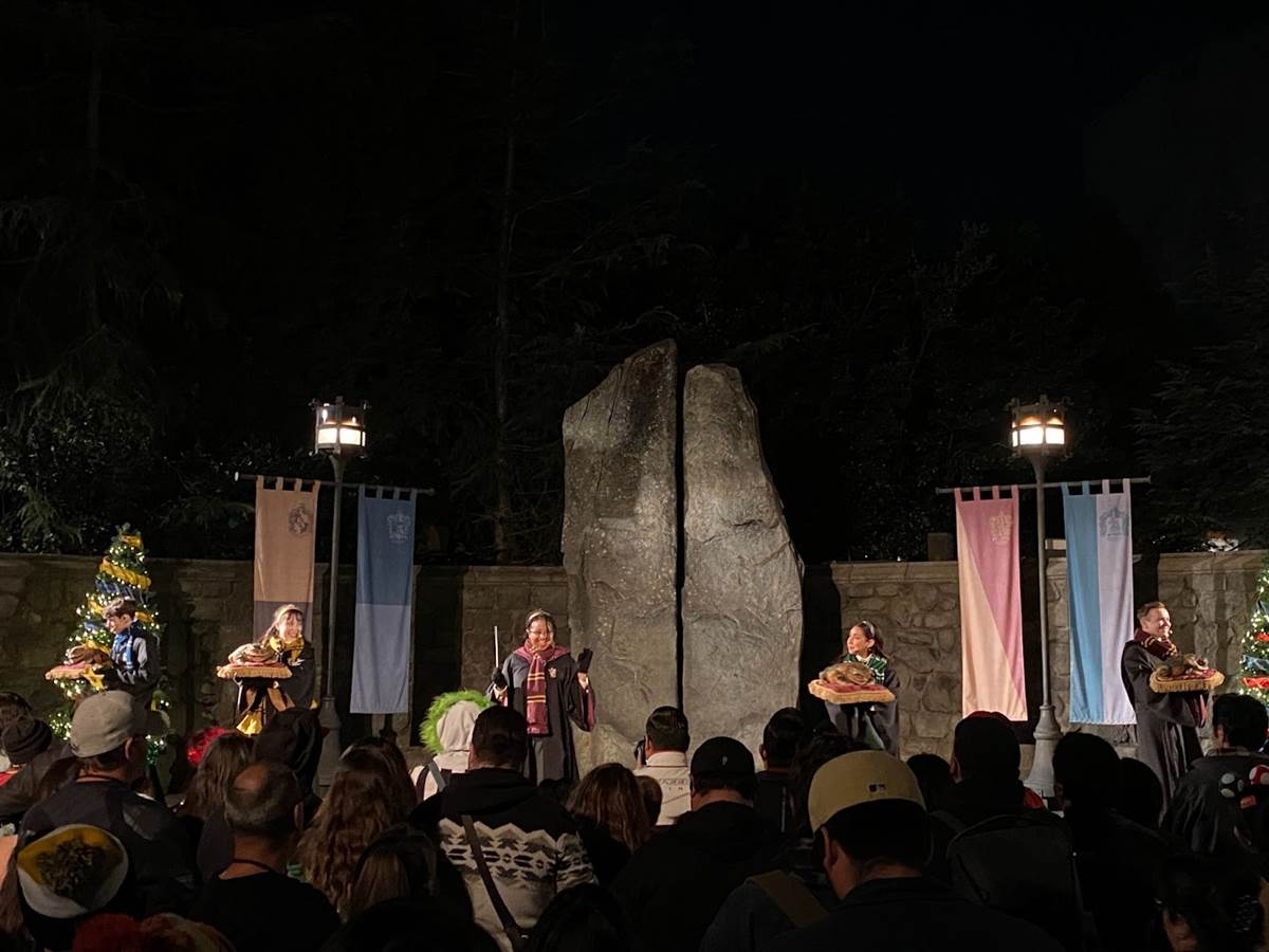 Next it was time to head over to The Wizarding World of Harry Potter, which once again has been transformed into a holiday wonderland with countless sparkling lights all around Hogsmeade. As I wandered through this gorgeous area of the park, I spotted the Frog Choir performing seasonal songs.