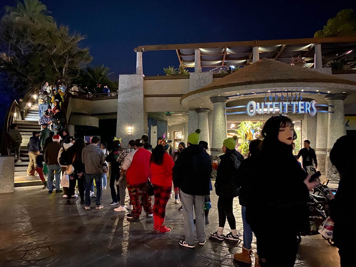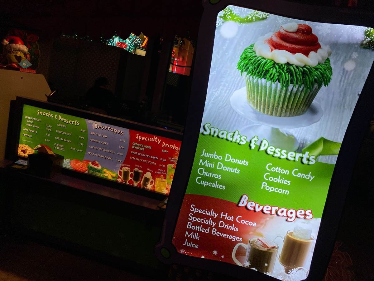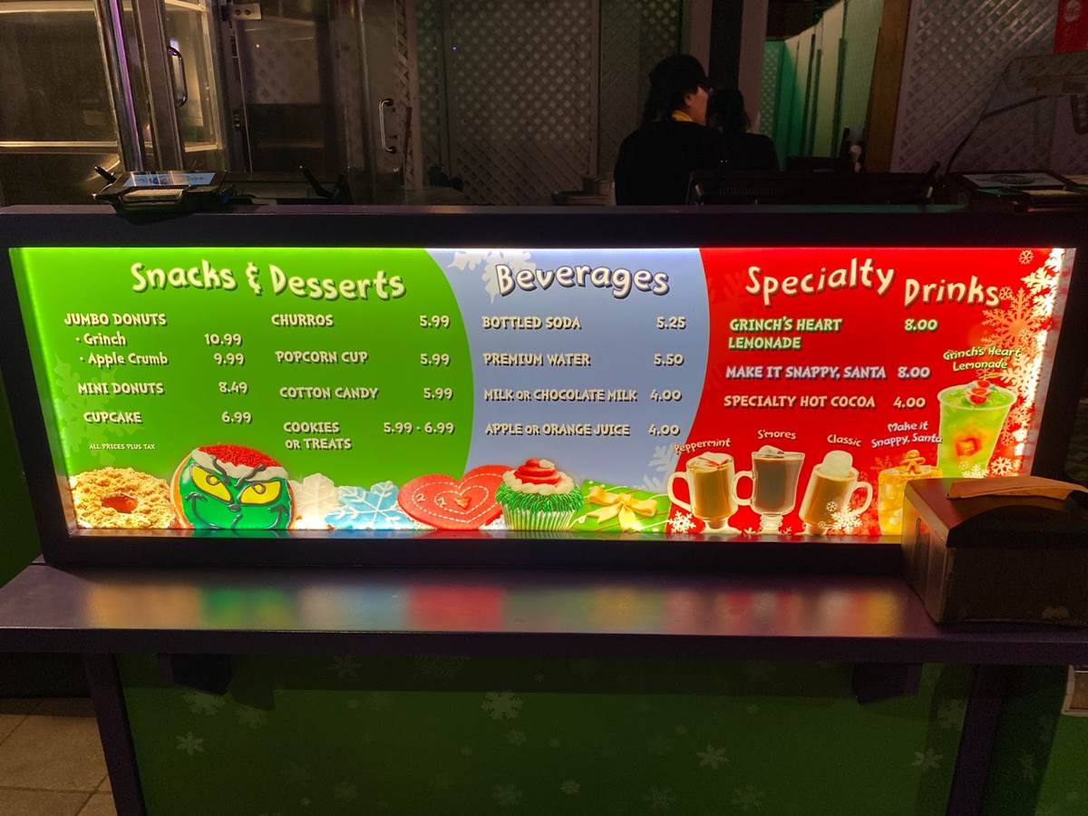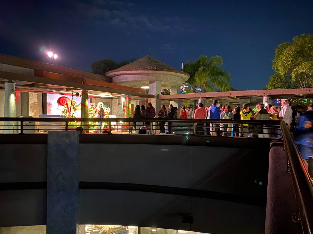Down on the Lower Lot, I found more decor for the holiday season and some very fun wall projections for that night’s Pass Member Holiday Park Takeover. There was also a secondary meet-and-greet location for the Grinch above the Jurassic World area.