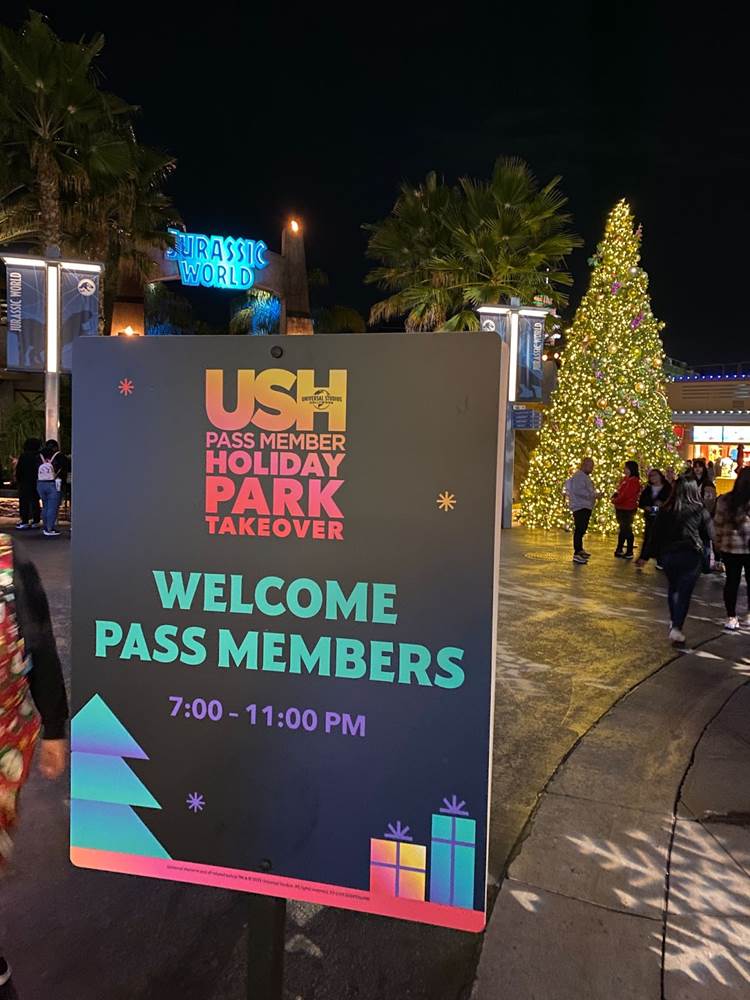 Rewinding time a little bit, I want to share some of the other holiday sights around Universal CityWalk and Universal Studios Hollywood, plus the signage for the Pass Member Holiday Park Takeover.