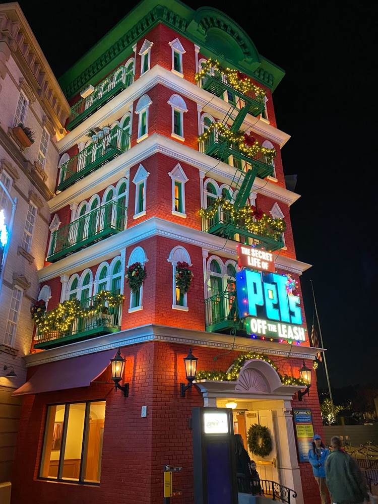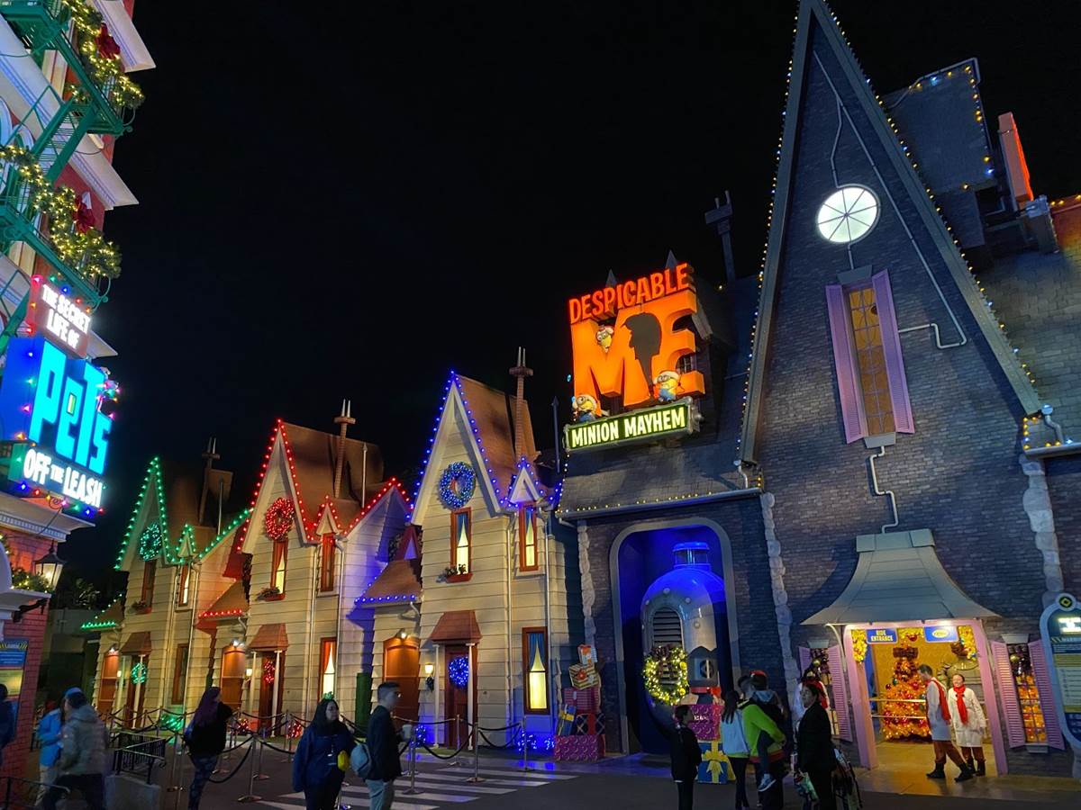 During my visit I also swung by Minion Land (the area of Universal Studios Hollywood themed to the Illumination animation studio and its properties) to check out the very nice-looking holiday decorations there, including those surrounding the relatively new Secret Life of Pets attraction.