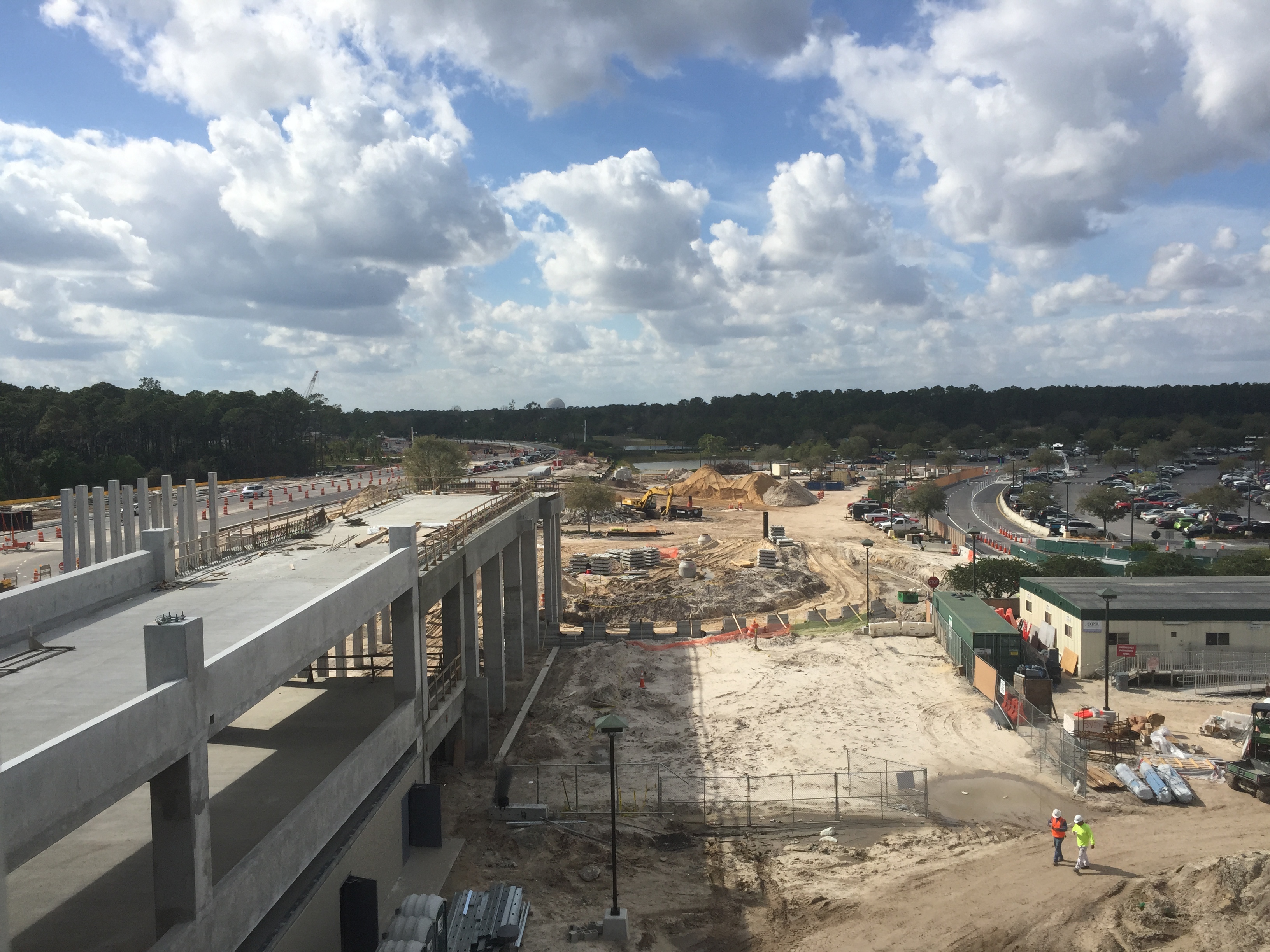 Now that we are parked we have to take a look at how we will get to the new Disney Springs area. The main cross over from the Orange garage is coming along nicely.