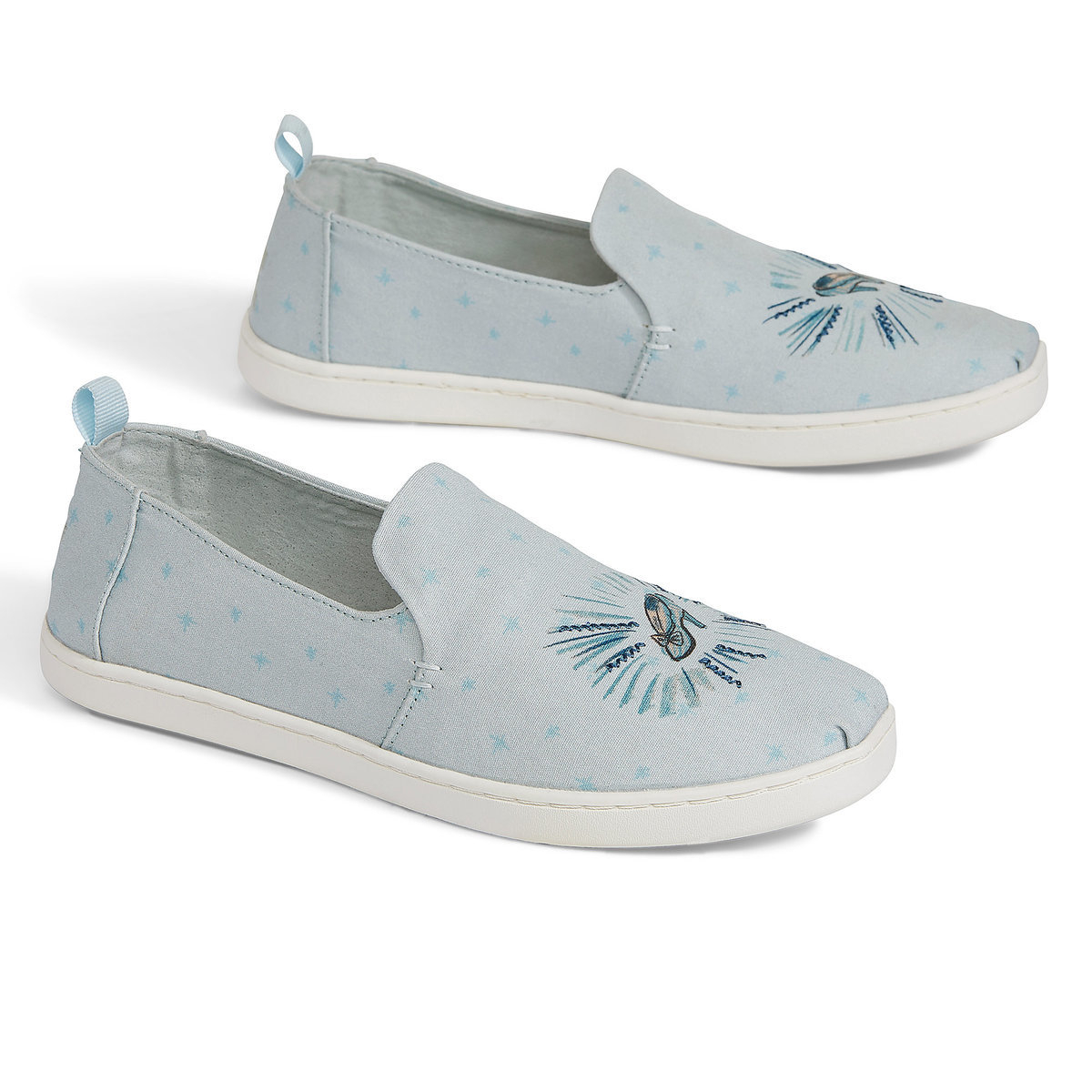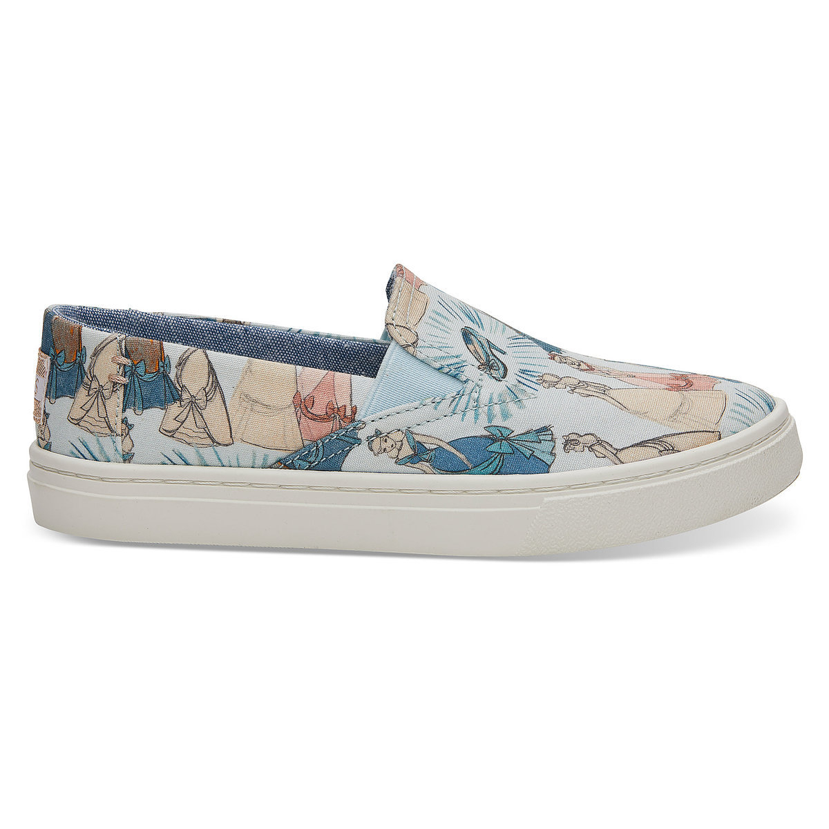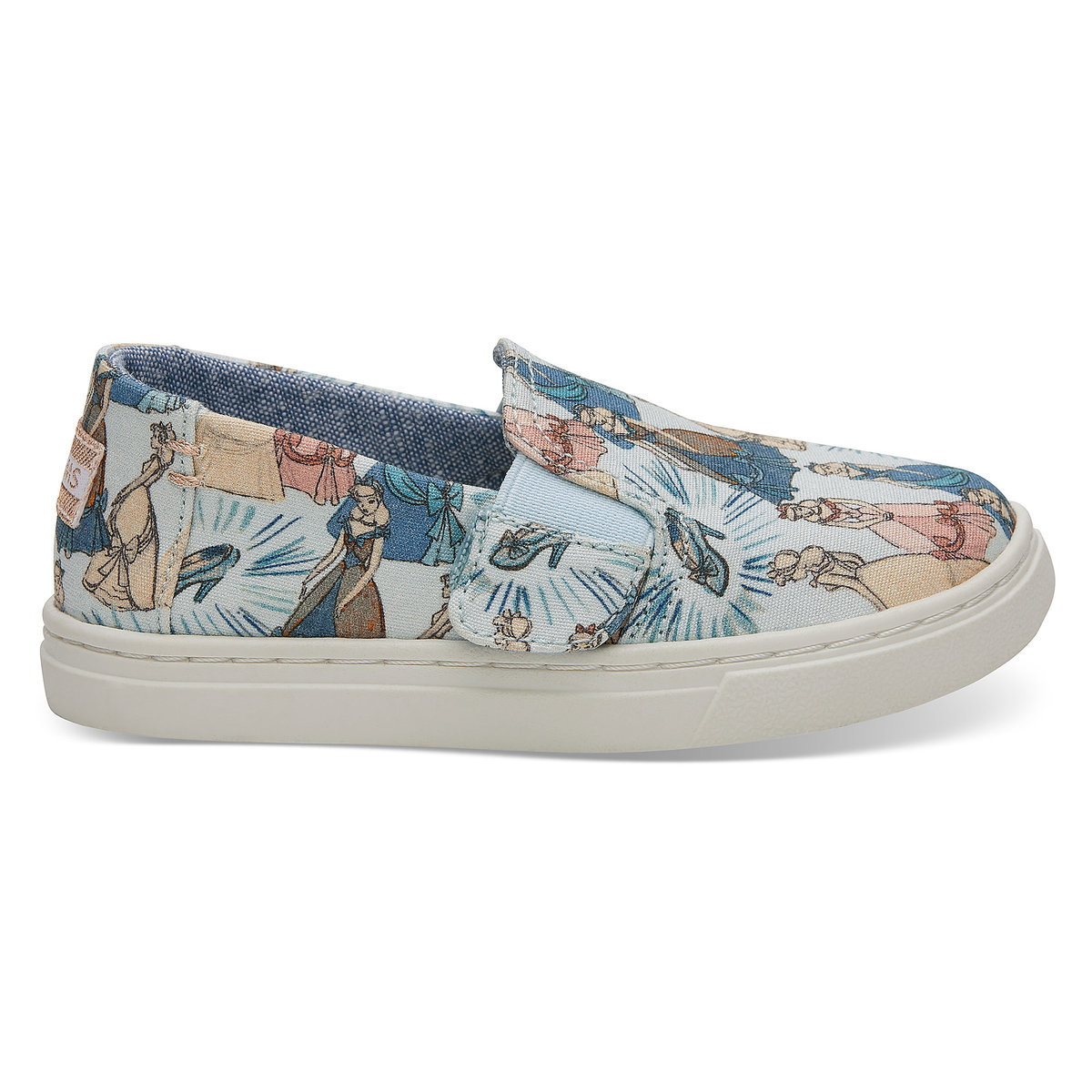 Adults will love the comfortable slip on shoe from TOMS. Featuring the sweet princess and her iconic glass slipper theses flats are sure to impress.Cinderella Canvas Shoes for Kids